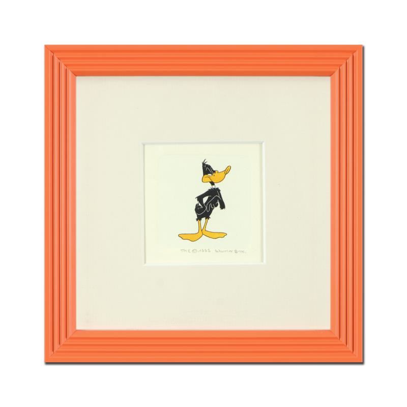 "Daffy Duck (Looking to the Side)" is a limited edition etching on paper with hand-tinted coloring from Warner Bros, numbered and dated 1999. This piece comes framed. Measures approx. 9" x 9" (with frame), 1.5" x 2.5" (image).