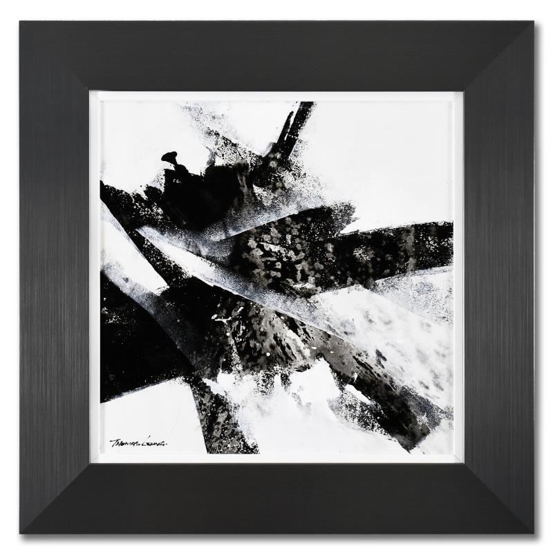 "Dancing Color 12" is an original acrylic painting on canvas board by Thomas Leung, hand signed by the artist. This piece comes custom framed. Includes Letter of Authenticity. Measures approx. 22.5" x 22.5" (frame), 15" x 15" (image).