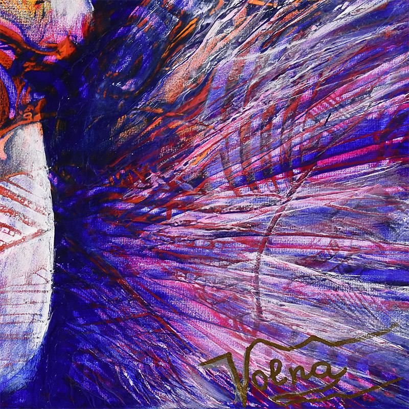 "Looking at the Sky" is an original acrylic painting on stretched canvas by Nadia Volna, hand signed by the artist. This piece is painted with light-reactive black light paint that reveals brilliant colors when viewed under incandescent light. This piece comes with a blacklight flashlight (batteries not included). Includes Letter of Authenticity. Measures approx. 18" x 24" (image).
