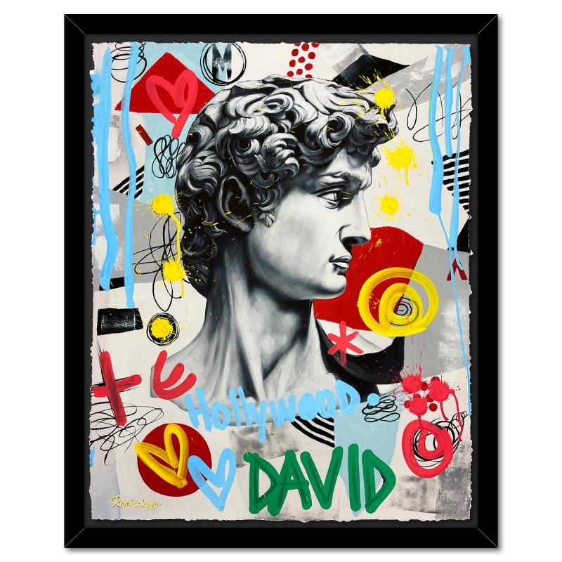 "David" is a one-of-a-kind mixed media on deckle edge paper by Nastya Rovenskaya; hand signed by the artist. This piece comes custom framed and includes letter of authenticity. Measures approximately 36.5" x 30" (framed), 30.5" x 24" (image). This item requires special handling and may have a longer than usual turnaround.