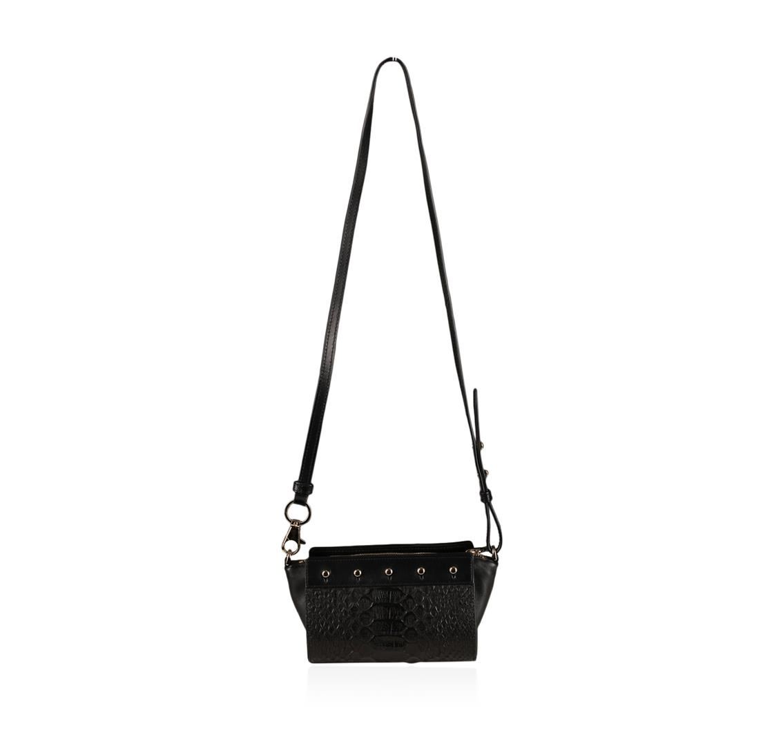 New with tags Alexander Wang black leather convertible Pelican Sling Bag styled with an optional Python Cover. Exterior Python cover removed so bag can be worn with smooth-leather finish at front and back; polished gold tone hardware. Lined with suede. Slip pocket at interior, detachable, adjustable shoulder strap, Top zip closure, 6.0" Height x 8.0" Width x 4.5" Depth (approx.), 23" Maximum strap drop (approx.), Imported.