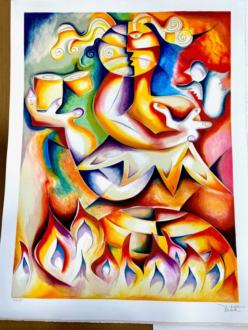 A color lithograph 30.5x23.5", hand-pulled in a Paris studio in Montmarte that Chagall worked at. We have Artist Proof 25/26 & 26/26.