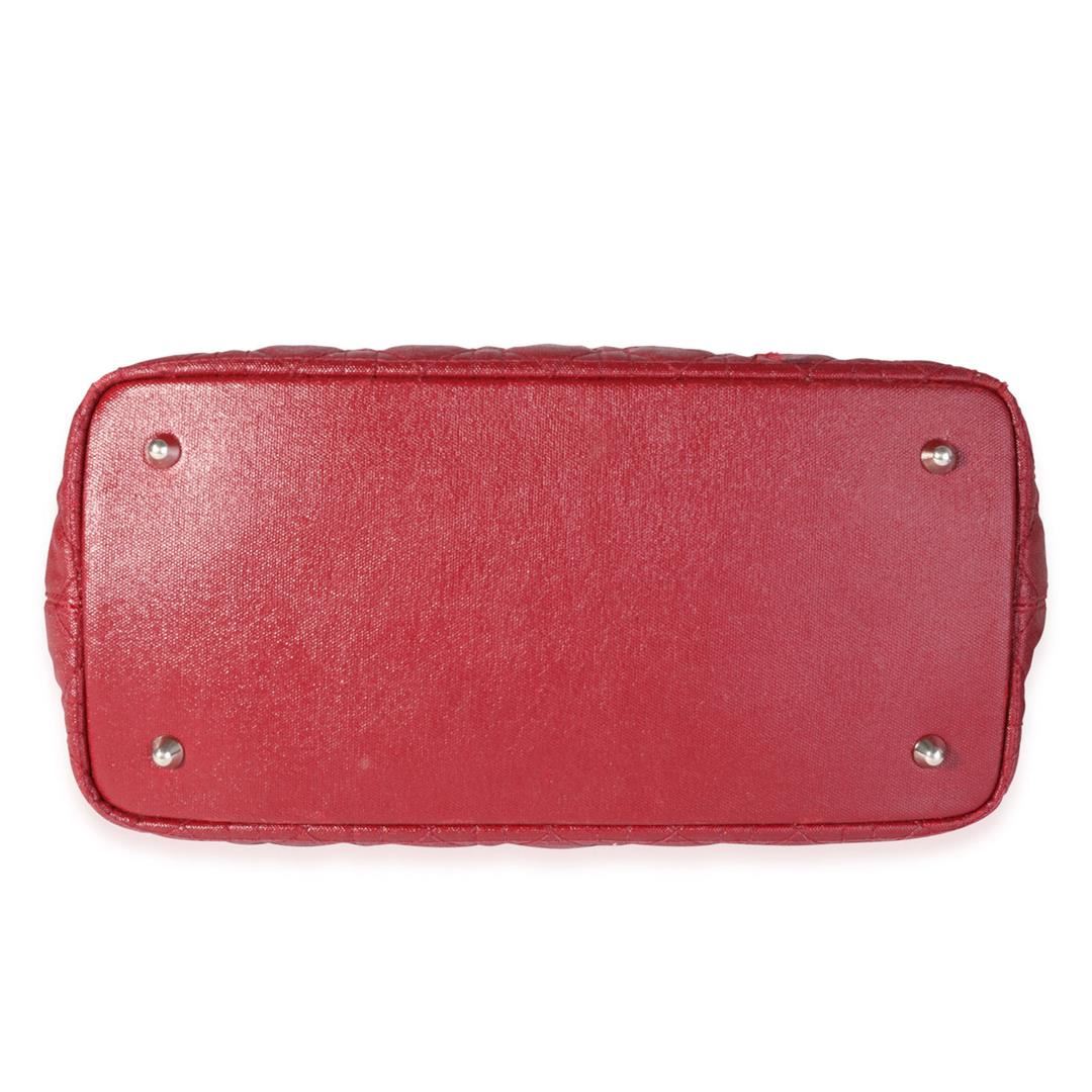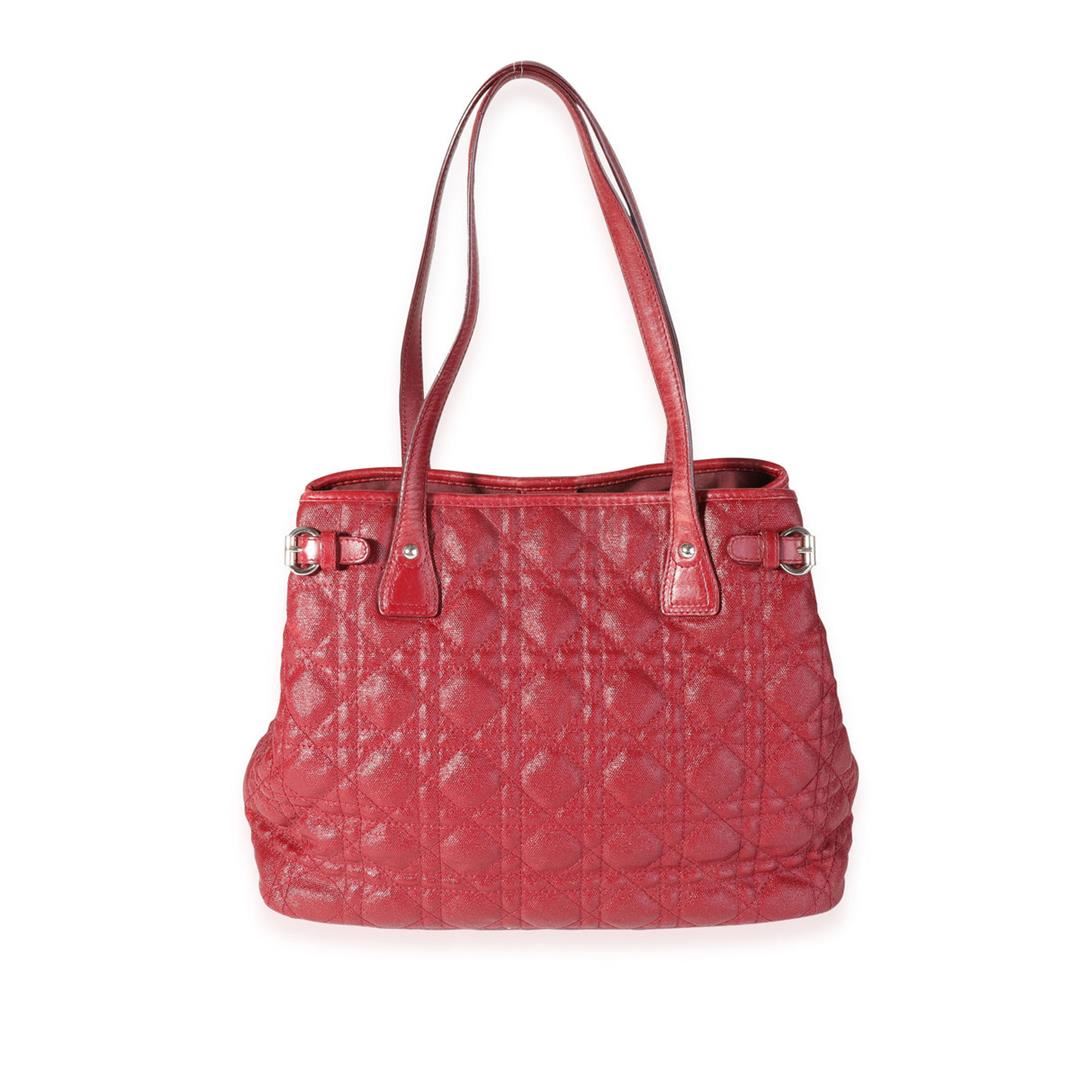 One Dior Red Cannage Coated Canvas Panarea Tote. Item is sold AS-IS. All available information is listed in the description and shown in the photo. Dior Red Cannage Coated Canvas Panarea Tote. Features silver hardware, red leather straps, red canvas interior with a zipper pocket, and a button closure.