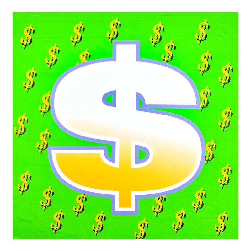 "Dollar Sign (State 4)" is limited edition hand pulled silkscreen unique mixed media on canvas by Andy Warhol protege Steve Kaufman (1960-2010). This piece is numbered and hand signed inverso and includes a letter of authenticity. As is common with Kaufman's works, this piece may have perceived minor flaws, but is in overall good condition. Measures approximately 25.5" x 25.5" before cropping.