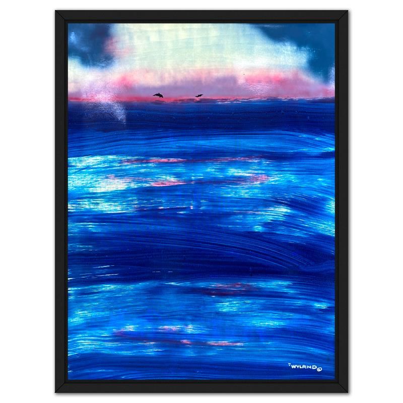 "Dolphins" is an original acrylic painting on canvas by Wyland, hand signed by the artist. This piece comes custom framed. Includes Letter of Authenticity. Measures approx. 54" x 42" (frame), 51" x 39" (image).
