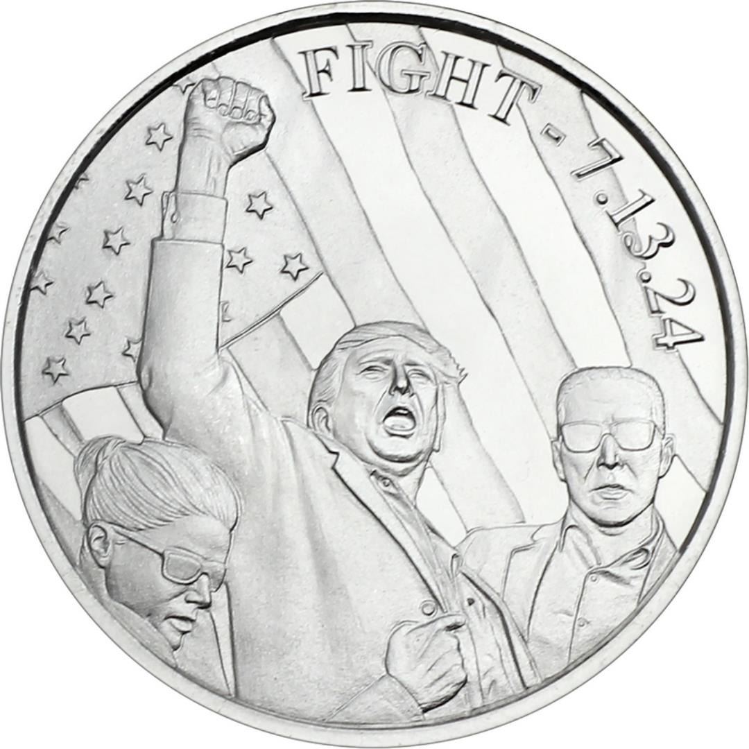 This Donald Trump Fight 1oz .999 Fine Silver Coin commemorates the iconic image from the assassination attempt, showing Trump defiantly raising his fist in a moment of resilience and strength. Minted in .999 fine silver, this coin captures a powerful moment in history, making it a symbolic and valuable addition for collectors and supporters alike.
