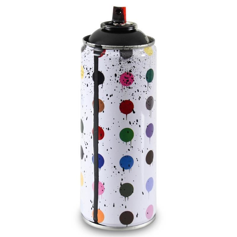 "Hirst Dots (Black)" is a numbered limited edition hand painted spray can by Mr Brainwash. This piece bears the plate signature of the artist and comes from his 2020 Classic Spray Can Collection. Measures approximately 2.5" x 7.5".