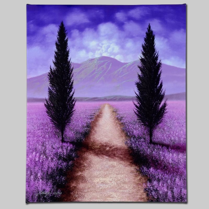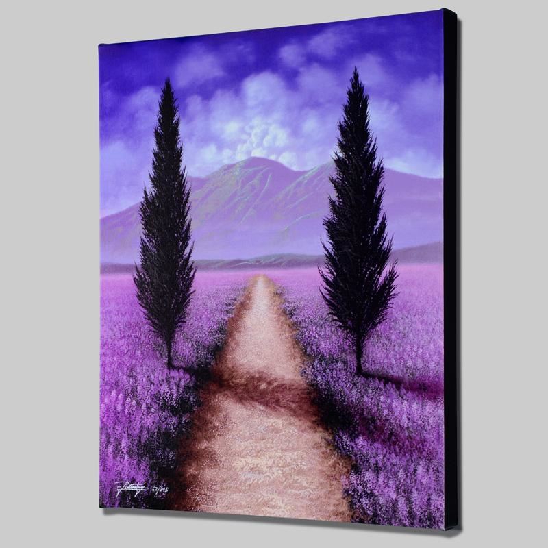 With an impeccable talent for capturing light and shadow, Jon Rattenbury creates luminous landscapes that are replete with bright colors and intricate details. "Dream Walk" is a limited edition giclee on canvas, numbered and hand signed by Rattenbury! This piece comes gallery wrapped. Includes Certificate of Authenticity! Measures approx. 16" x 20" (image).