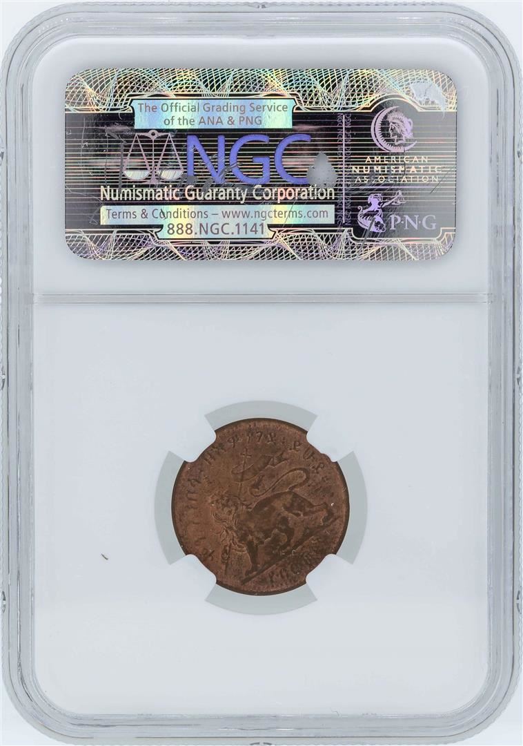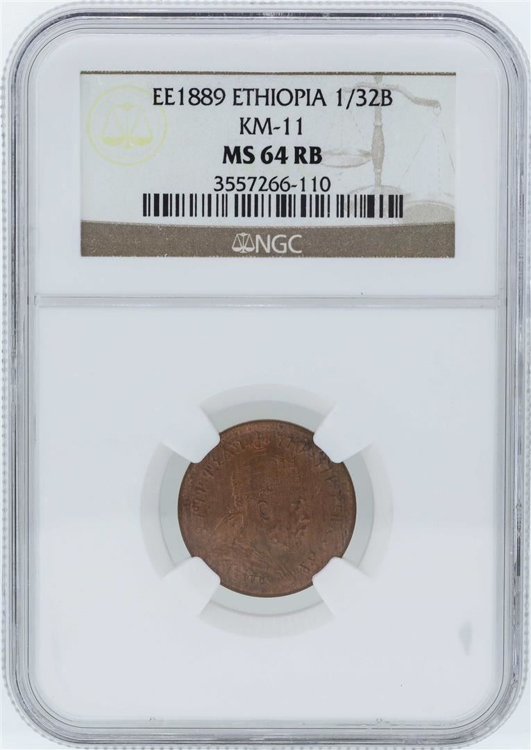 One EE1889 Ethiopia 1/32 Birr Coin NGC MS64RB. NGC Certified.