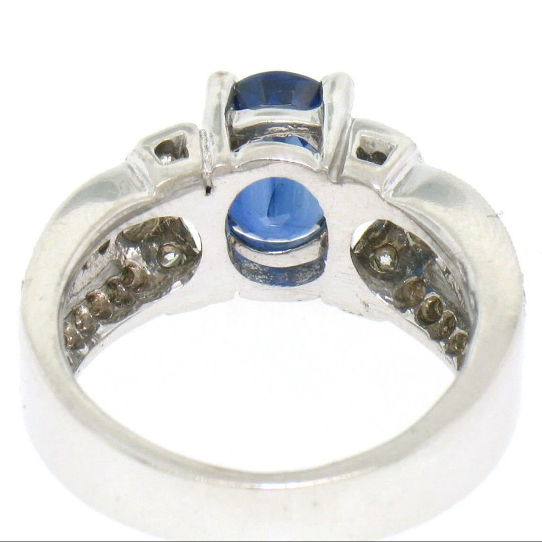 One NEW EGL 14k White Gold 2.78 Ctw Royal Blue Sapphire and Diamond Engagement Cocktail Ring. Item Details - Material: 14k Solid White Gold, Weight: 8.50 Grams, Stone: (1) Natural Genuine Sapphire - Oval Brilliant Cut - Exquisite Royal Blue Color - 2.18ct (exact - EGLUSA Certified), (40) Natural Genuine Diamonds - Round Brilliant Cut - VS1 Clarity - F Color - SUPER FINE - 0.60ctw (approx.), Size: 7.0 , Dimensions: 9.25mm (Top of ring) - 8.00mm (Top of shank), Condition: Brand New
