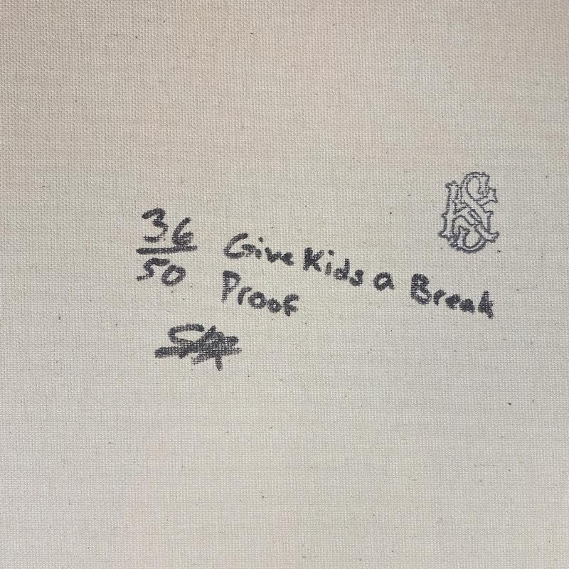"ESPRESSO" is a limited edition hand pulled silkscreen mixed media on canvas by Andy Warhol protege Steve Kaufman (1960-2010). This piece is numbered and 36/50 and hand signed inverso. Includes letter of authenticity. As is common with Kaufman's works, this piece may have perceived minor flaws, but is in overall good condition. Measures approximately 25.5" x 26" (image).