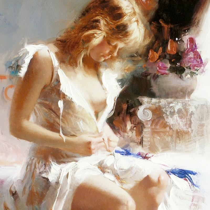 "Early Morning" is a limited edition giclee on canvas by Pino (1931-2010), numbered and hand signed by the artist. Includes Certificate of Authenticity. Measures approx. 12" x 16" (image).
