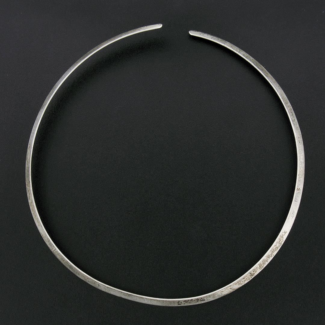 A vintage silver choker collar cuff necklace by Ed Levin. It weighs a total of 11.71 grams, measures 4.5mm wide, and measures 14.5 inches in length.