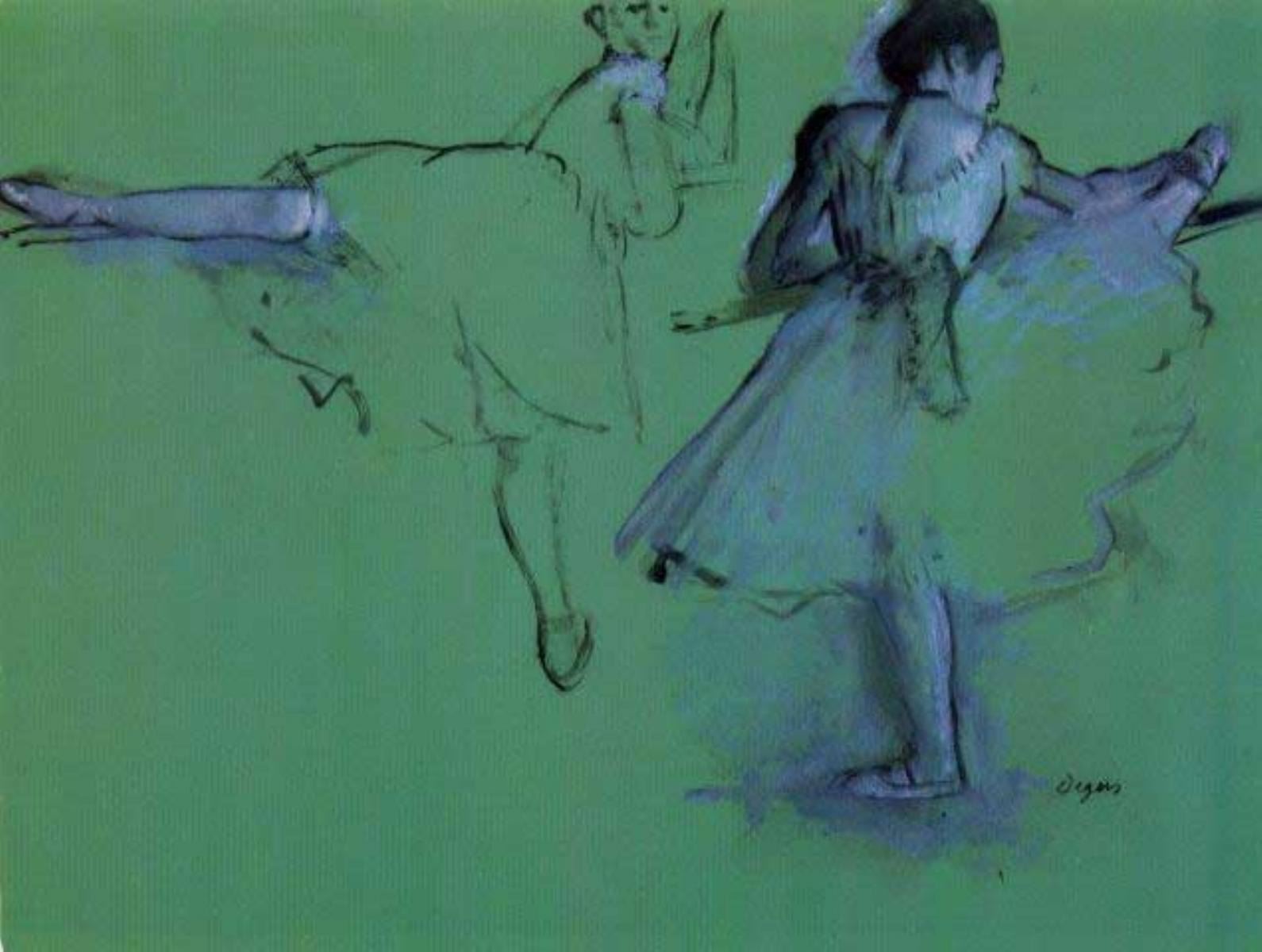 Artist: Degas - Title: Dancers At The Bar #2 - Medium: Fine Art Reproduction Giclee on Archival Canvas - Image Size: Approximately 15 inches x 20 inches - Framed: Unframed on Unstretched Canvas - Edgar Degas was a French artist famous for his work in painting, sculpture, printmaking and drawing. He is regarded as one of the founders of Impressionism although he rejected the term, and preferred to be called a realist. A superb draftsman, he is especially identified with the subject of the dance, and over half of his works depict dancers. These display his mastery in the depiction of movement, as do his racecourse subjects and female nudes. His portraits are notable for their psychological complexity and depiction of human isolation. - Early in his career, he wanted to be a history painter, a calling for which he was well prepared by his rigorous academic training and close study of classic art. In his early thirties, he changed course, and by bringing the traditional methods of a history painter to bear on contemporary subject matter, he became a classical painter of modern life.
