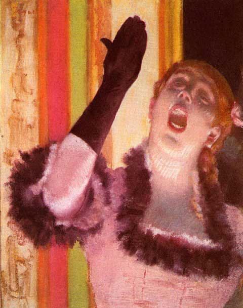 Artist: Degas - Title: The Singer With The Glove - Medium: Fine Art Reproduction Giclee on Archival Canvas - Image Size: Approximately 32 inches x 25.25 inches - Framed: Unframed on Unstretched Canvas - Edgar Degas was a French artist famous for his work in painting, sculpture, printmaking and drawing. He is regarded as one of the founders of Impressionism although he rejected the term, and preferred to be called a realist. A superb draftsman, he is especially identified with the subject of the dance, and over half of his works depict dancers. These display his mastery in the depiction of movement, as do his racecourse subjects and female nudes. His portraits are notable for their psychological complexity and depiction of human isolation. - Early in his career, he wanted to be a history painter, a calling for which he was well prepared by his rigorous academic training and close study of classic art. In his early thirties, he changed course, and by bringing the traditional methods of a history painter to bear on contemporary subject matter, he became a classical painter of modern life.