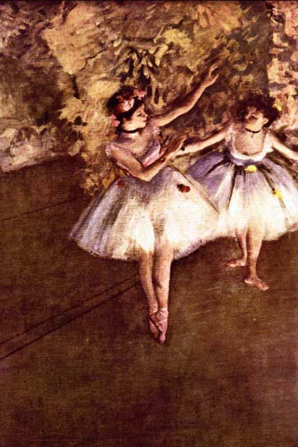 Artist: Degas - Title: Young Dancers - Medium: Fine Art Reproduction Giclee on Archival Canvas - Image Size: Approximately 32 inches x 21.25 inches - Framed: Unframed on Unstretched Canvas - Edgar Degas was a French artist famous for his work in painting, sculpture, printmaking and drawing. He is regarded as one of the founders of Impressionism although he rejected the term, and preferred to be called a realist. A superb draftsman, he is especially identified with the subject of the dance, and over half of his works depict dancers. These display his mastery in the depiction of movement, as do his racecourse subjects and female nudes. His portraits are notable for their psychological complexity and depiction of human isolation. - Early in his career, he wanted to be a history painter, a calling for which he was well prepared by his rigorous academic training and close study of classic art. In his early thirties, he changed course, and by bringing the traditional methods of a history painter to bear on contemporary subject matter, he became a classical painter of modern life.