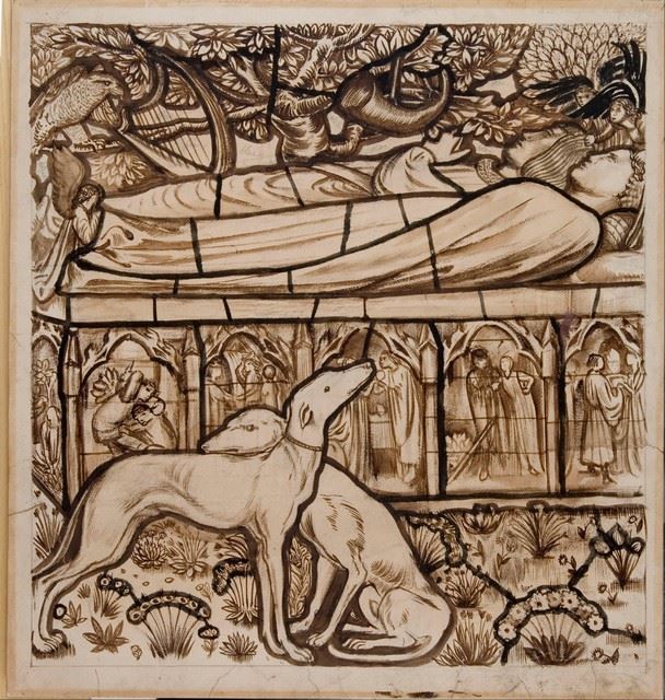 Artist: Edward Burne-Jones - Title: The Tomb of Tristan and Isolde - Medium: Fine Art Reproduction Giclee on Canvas - Image Size: Approximately 30.5 inches x 32 inches - Unframed on Unstretched Canvas - Biography: Sir Edward Coley Burne-Jones, 1st Baronet, (28 August 1833 - 17 June 1898) was a British artist and designer associated with the phase of the Pre-Raphaelite movement, who worked with William Morris on decorative arts as a founding partner in Morris, Marshall, Faulkner & Co.
