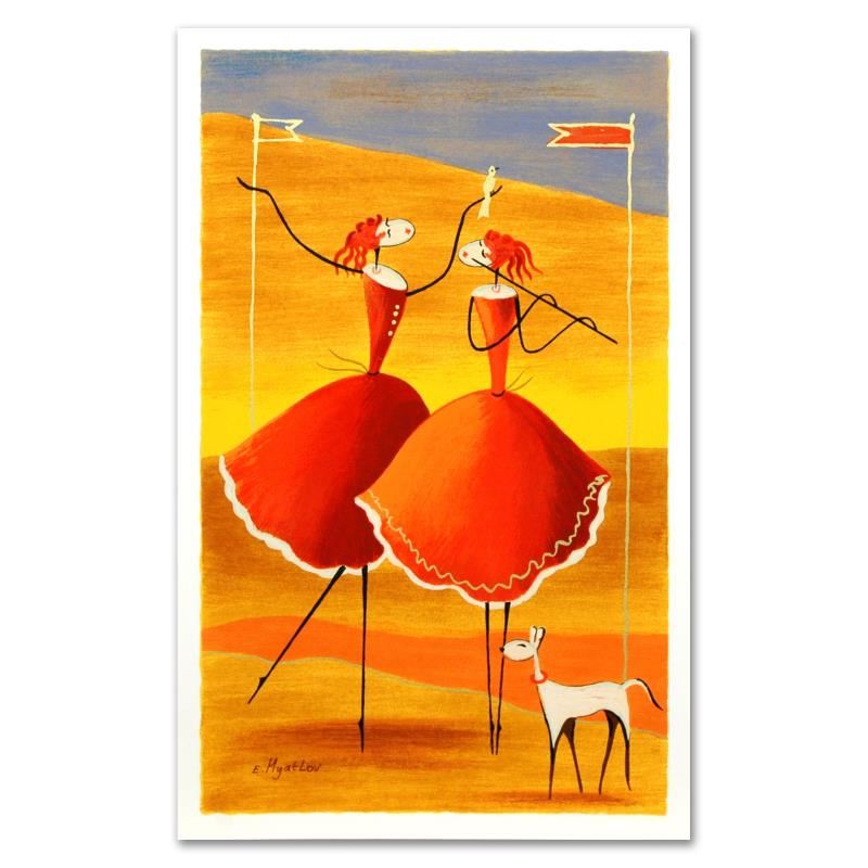 "Enchanted" is a limited edition serigraph on paper by Ester Myatlov, numbered and hand signed by the artist. Includes Certificate of Authenticity. Measures approx. 9" x 14" (with border), 8 x 13 (image).