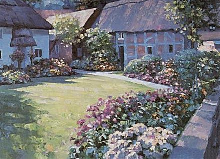 A charming English garden is the subject of this limited edition, signed & numbered serigraph on paper by Howard Behrens, with COA. 28 x 38