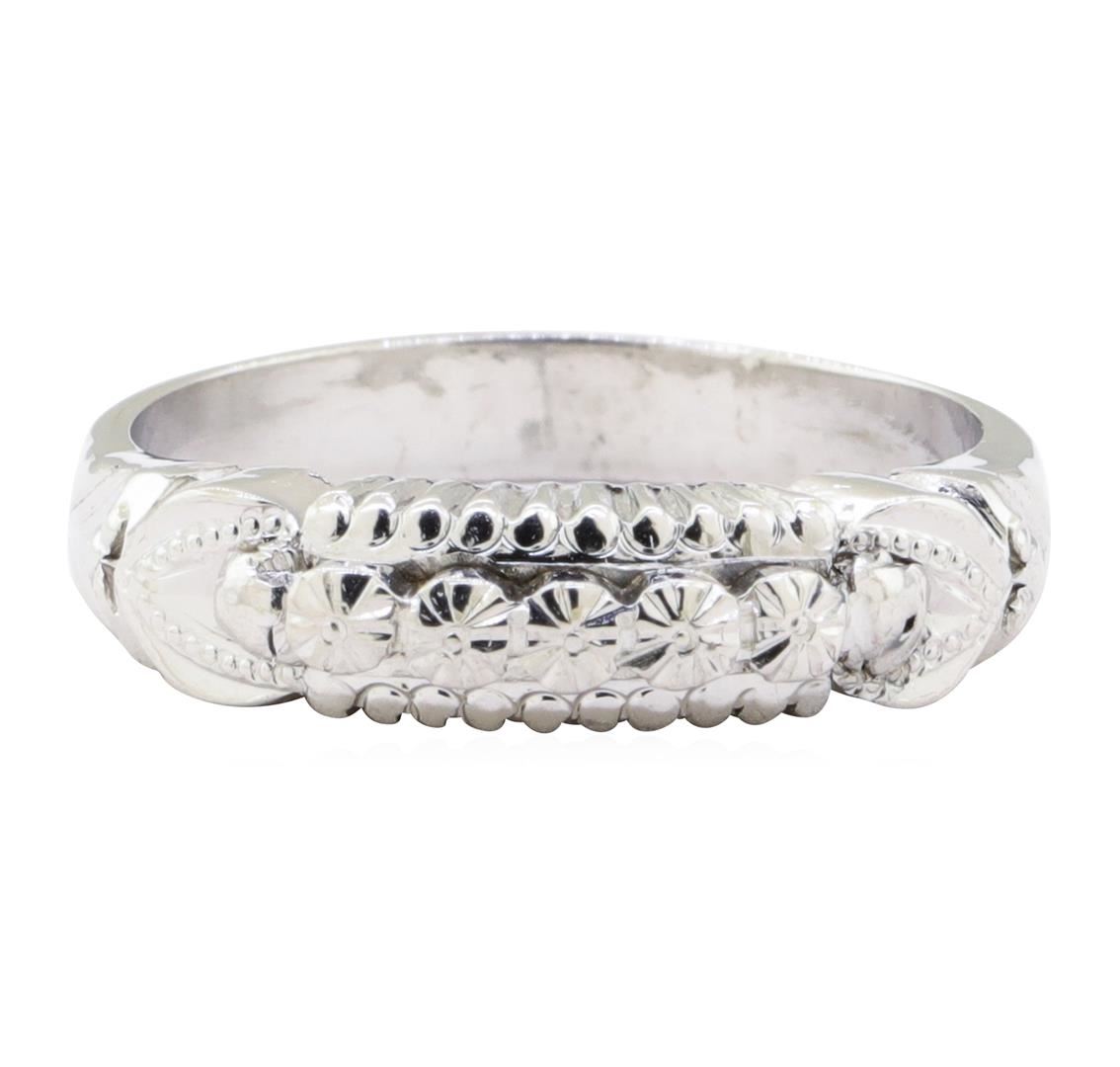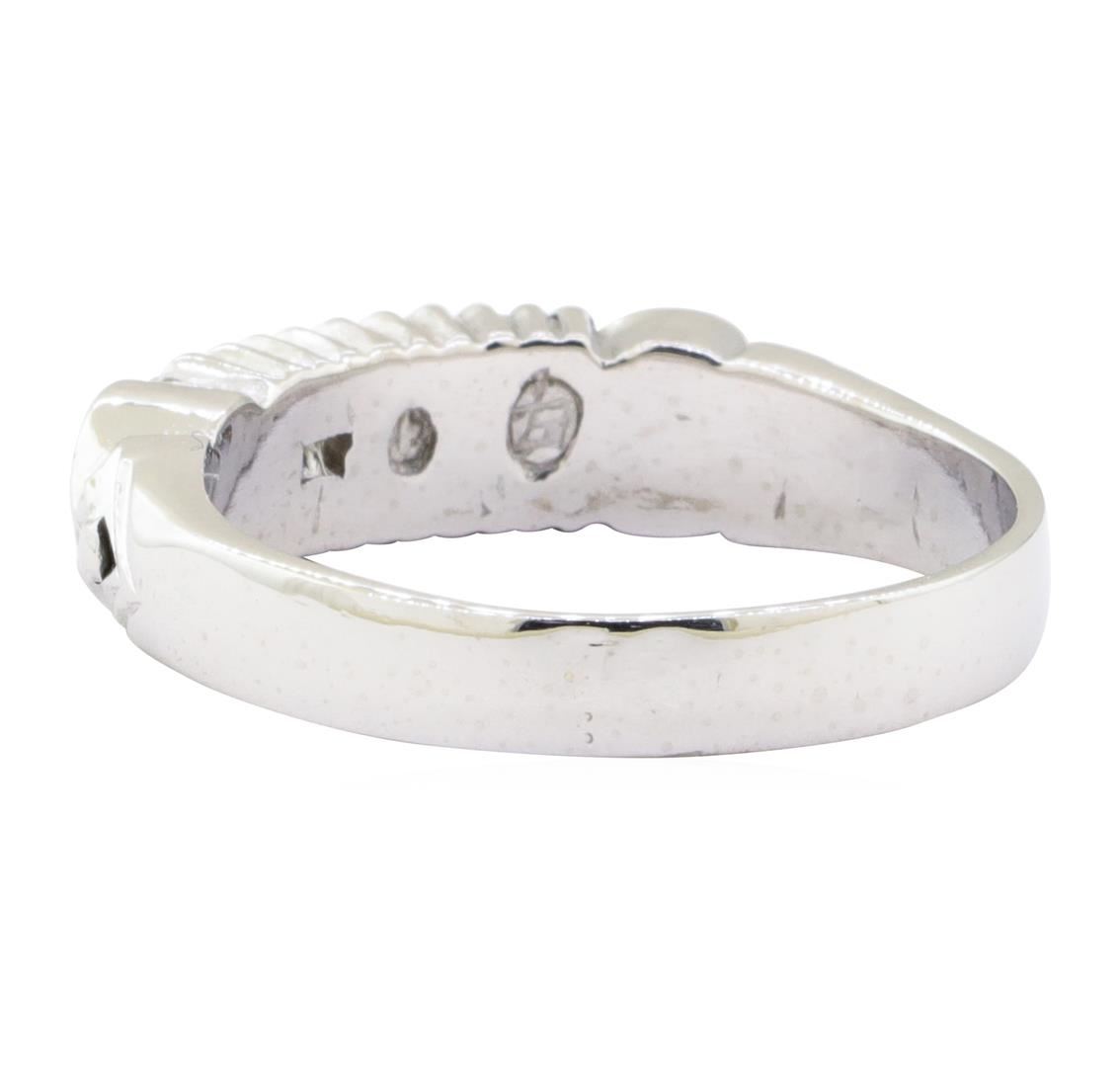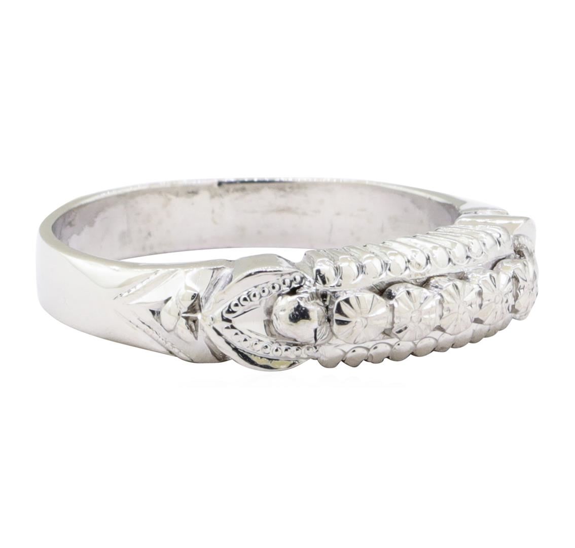 One ring with a straight line motif featuring: platinum weighing 8.9 grams.