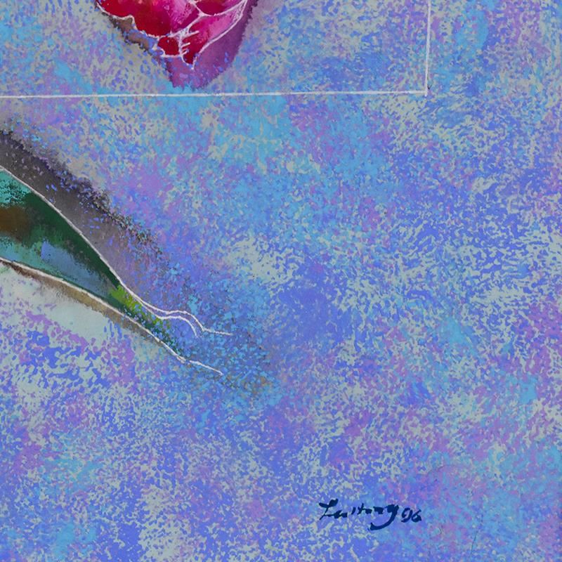 "Esoteric Dream III (1996)" is an original mixed media painting on paper by Lu Hong, hand signed by the artist. This piece comes custom framed. Includes Letter of Authenticity. Measures approx. 36" x 36" (frame), 26" x 26" (image).
