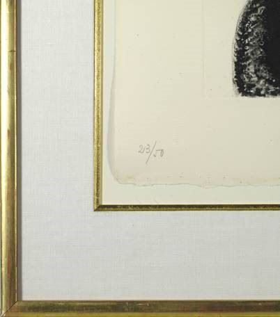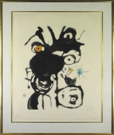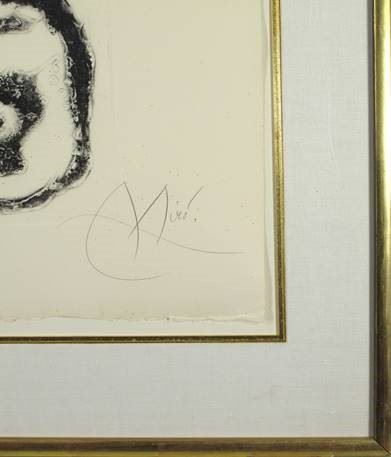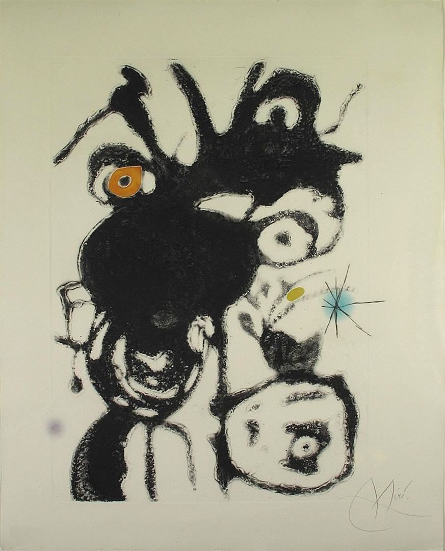 Artist: Joan Miro (1893 - 1983) Title: Espriu, 1975, Plate 4, 872 Publisher: Sala Gaspar, Barcelona Medium: Etching with Aquatint and Carborundum on Guarro Paper Dimensions: 86.5 x 62.8 cm Edition: 23/50 Signature: Hand Signed, Lower Right Condition: Excellent, Framed