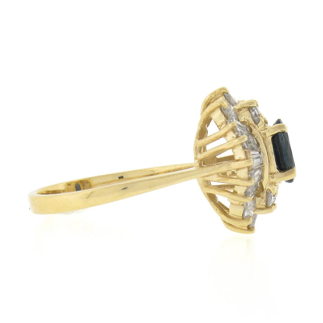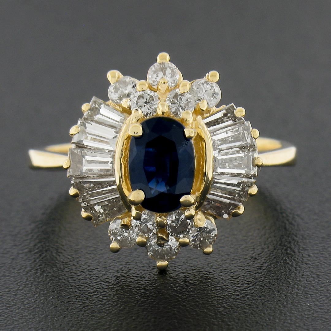 Estate 14k Gold 1.84 ctw Oval Sapphire & Baguette Diamond Ballerina Cocktail Rin