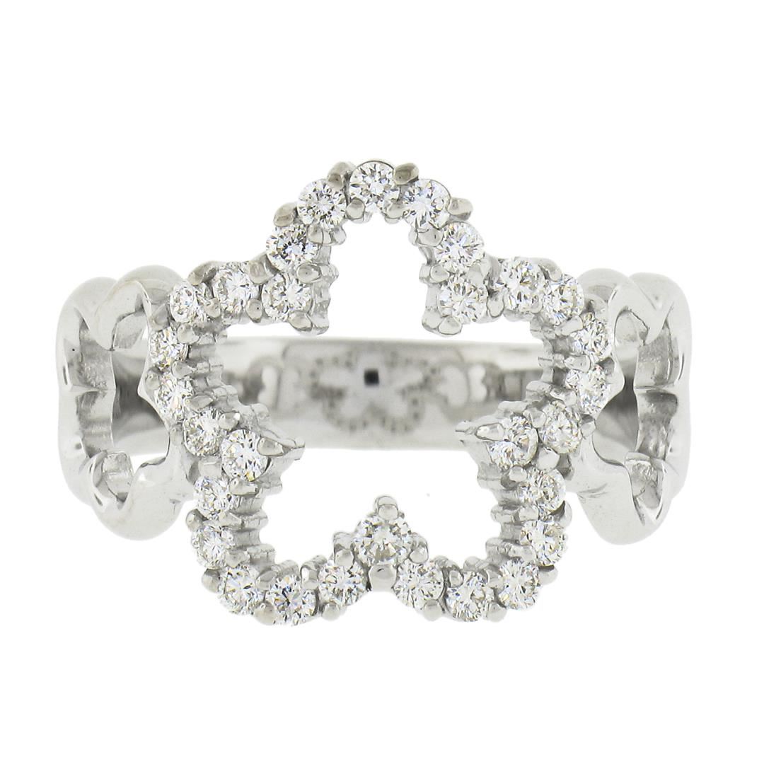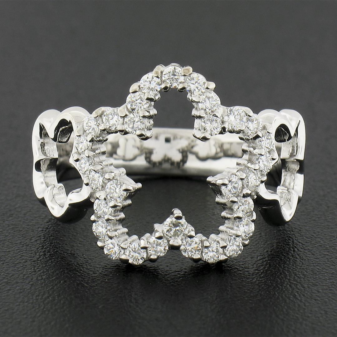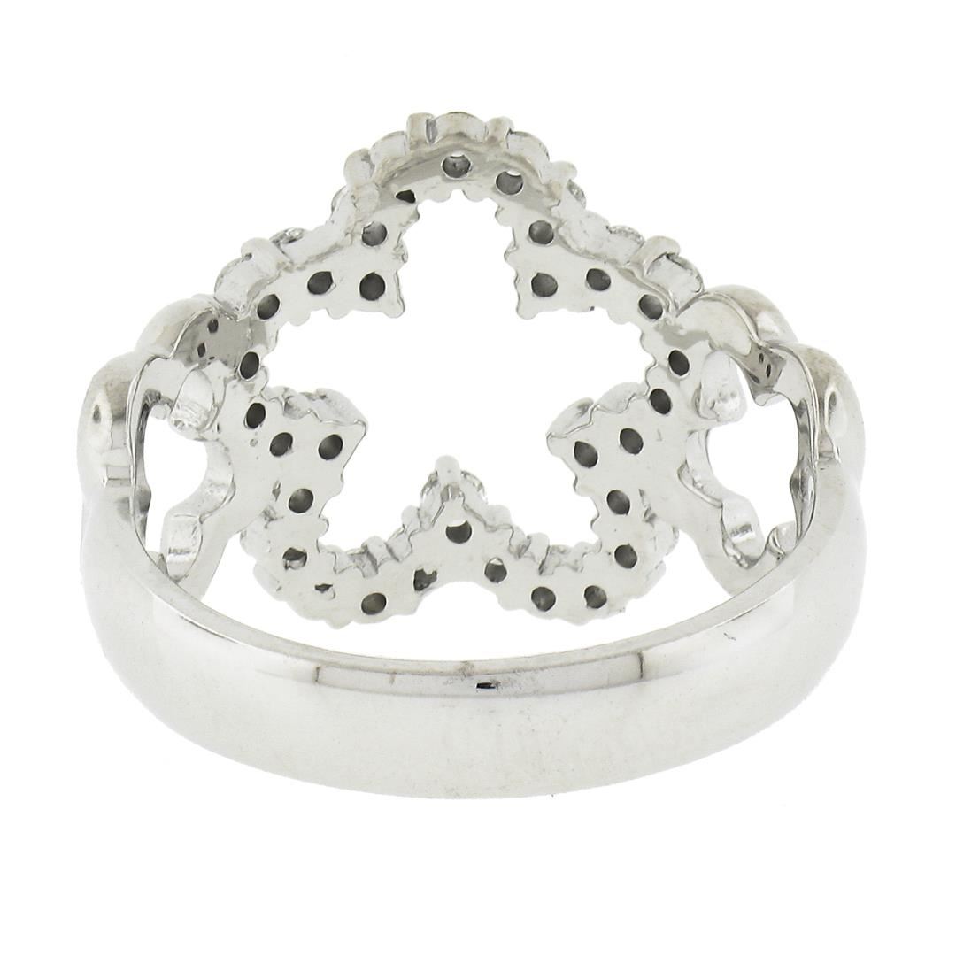 A solid 14k white gold star band ring, with 30 round cut natural diamonds (G/H - VS1/VS2 ; 0.47ctw). The ring is size 6.0, weighs a total of 4.22 grams, and measures 14.2mm wide.