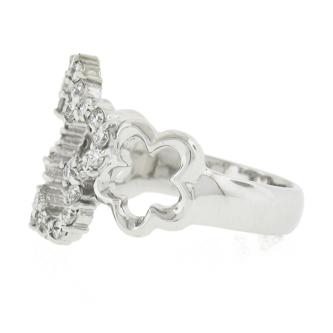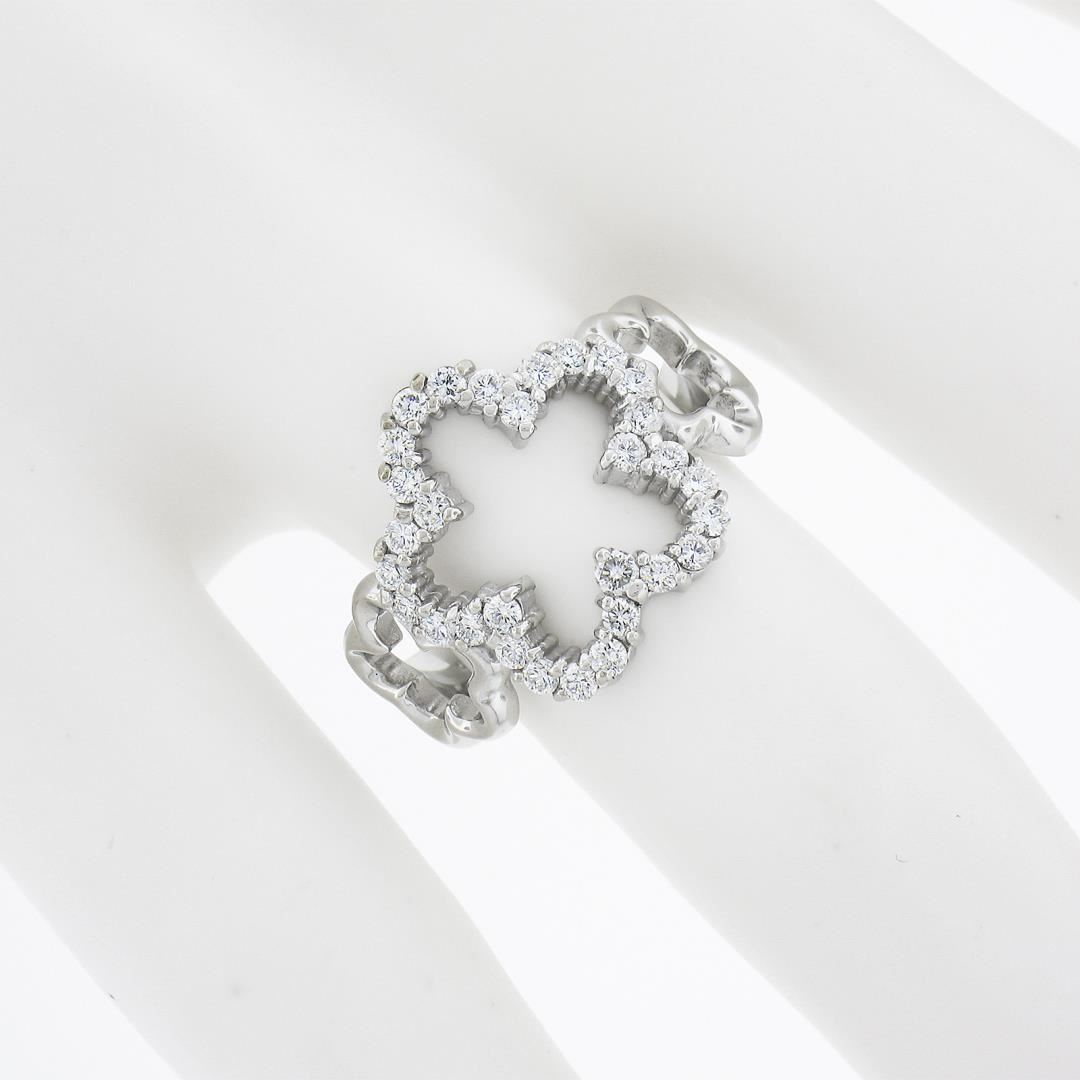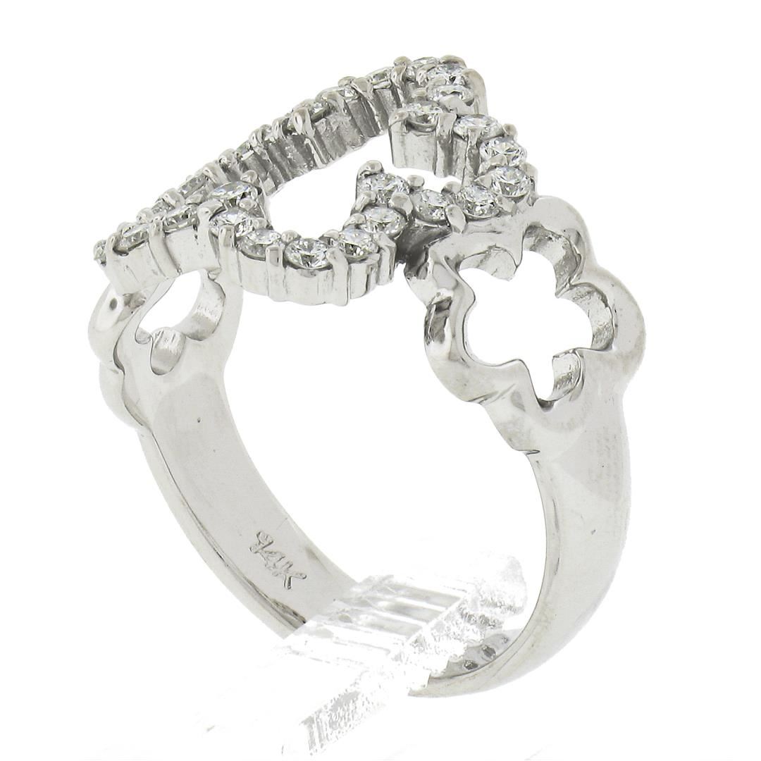 A solid 14k white gold star band ring, with 30 round cut natural diamonds (G/H - VS1/VS2 ; 0.47ctw). The ring is size 6.0, weighs a total of 4.22 grams, and measures 14.2mm wide.