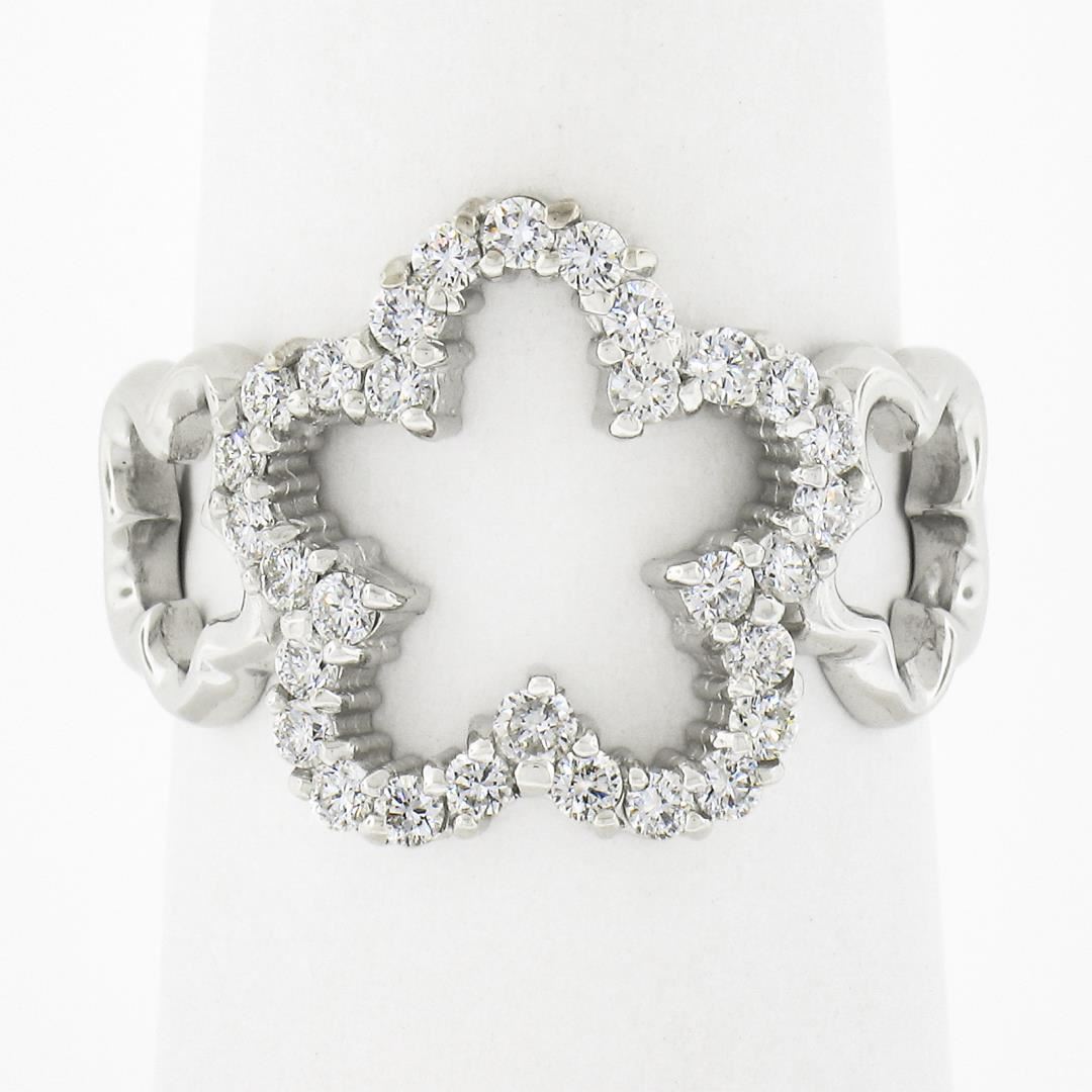 A solid 14k white gold star band ring, with 30 round cut natural diamonds (G/H - VS1/VS2 ; 0.47ctw). The ring is size 6.0, weighs a total of 4.22 grams, and measures 14.2mm wide.