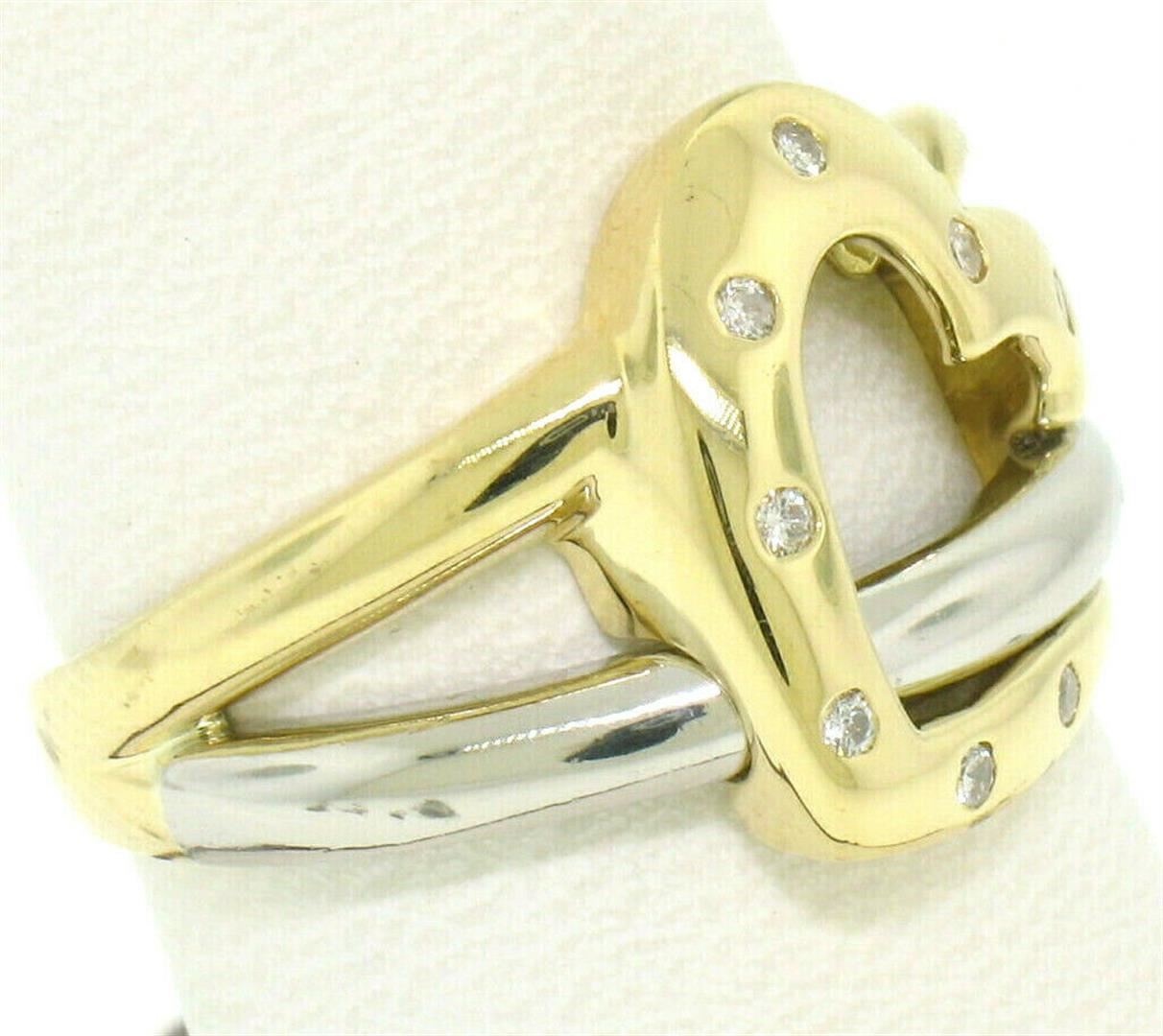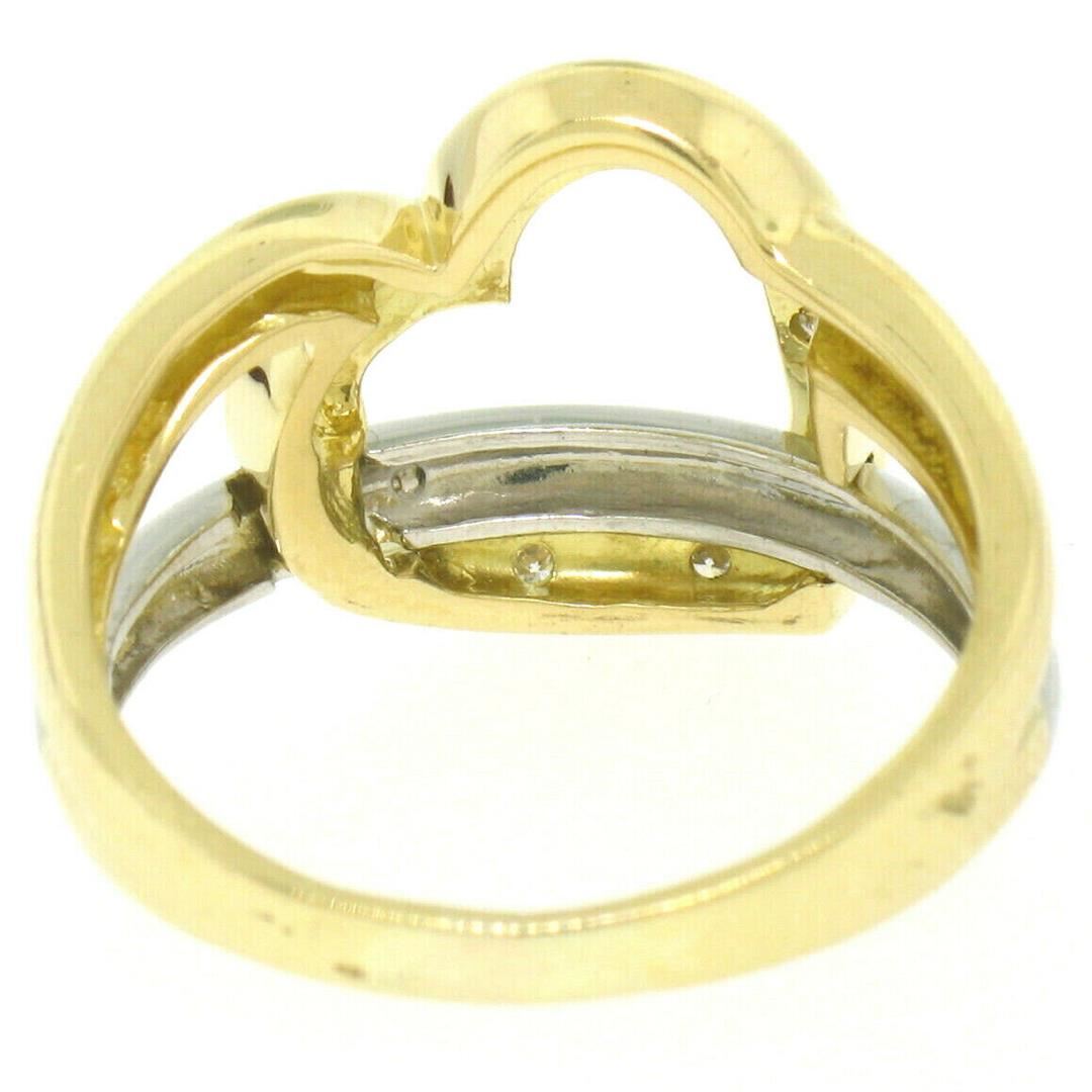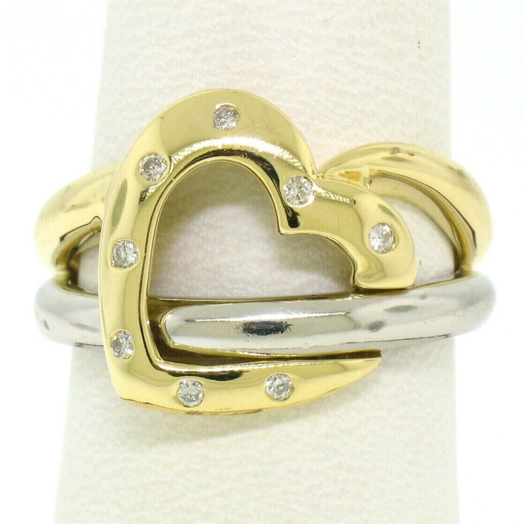 One Estate 18k Solid Yellow & White Gold 0.12ctw Diamond Open Heart Band Ring. Item Details: Material: Solid 18k Yellow and White Gold , Weight: 6.80 Grams , Stone: (8) Natural Genuine Diamonds - Round Brilliant Cut - Burnish Set - H Color - SI1 Clarity - 0.12ctw (approx.), Width: 15.0mm, Height: 3.6mm rise off the finger, Size: 8.0 , Condition: Estate piece. Excellent Condition!,
