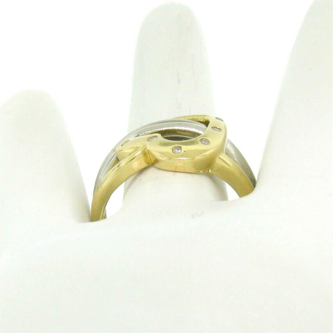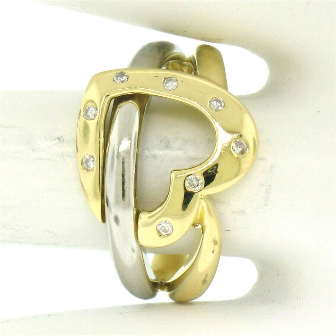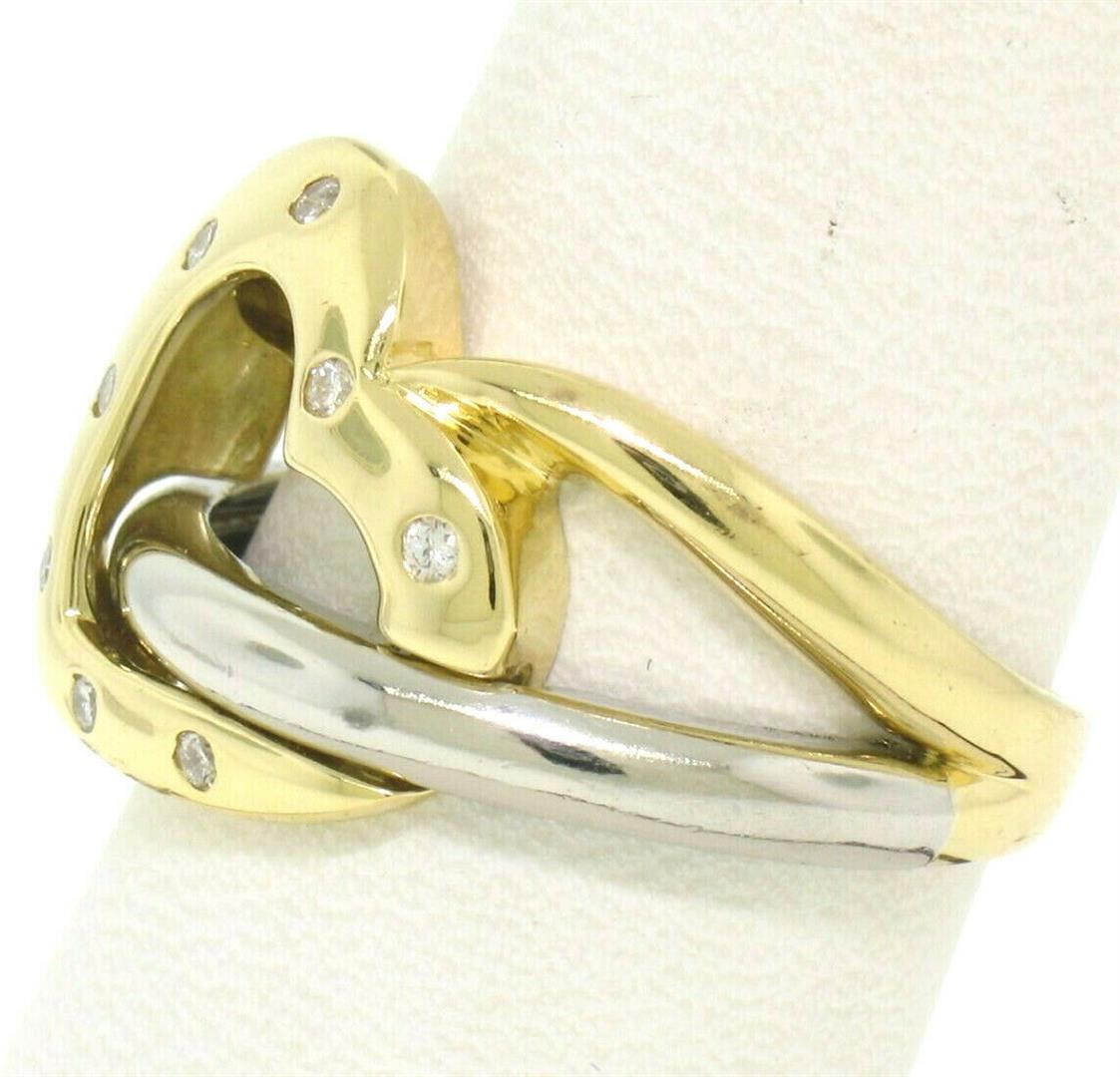 One Estate 18k Solid Yellow & White Gold 0.12ctw Diamond Open Heart Band Ring. Item Details: Material: Solid 18k Yellow and White Gold , Weight: 6.80 Grams , Stone: (8) Natural Genuine Diamonds - Round Brilliant Cut - Burnish Set - H Color - SI1 Clarity - 0.12ctw (approx.), Width: 15.0mm, Height: 3.6mm rise off the finger, Size: 8.0 , Condition: Estate piece. Excellent Condition!,
