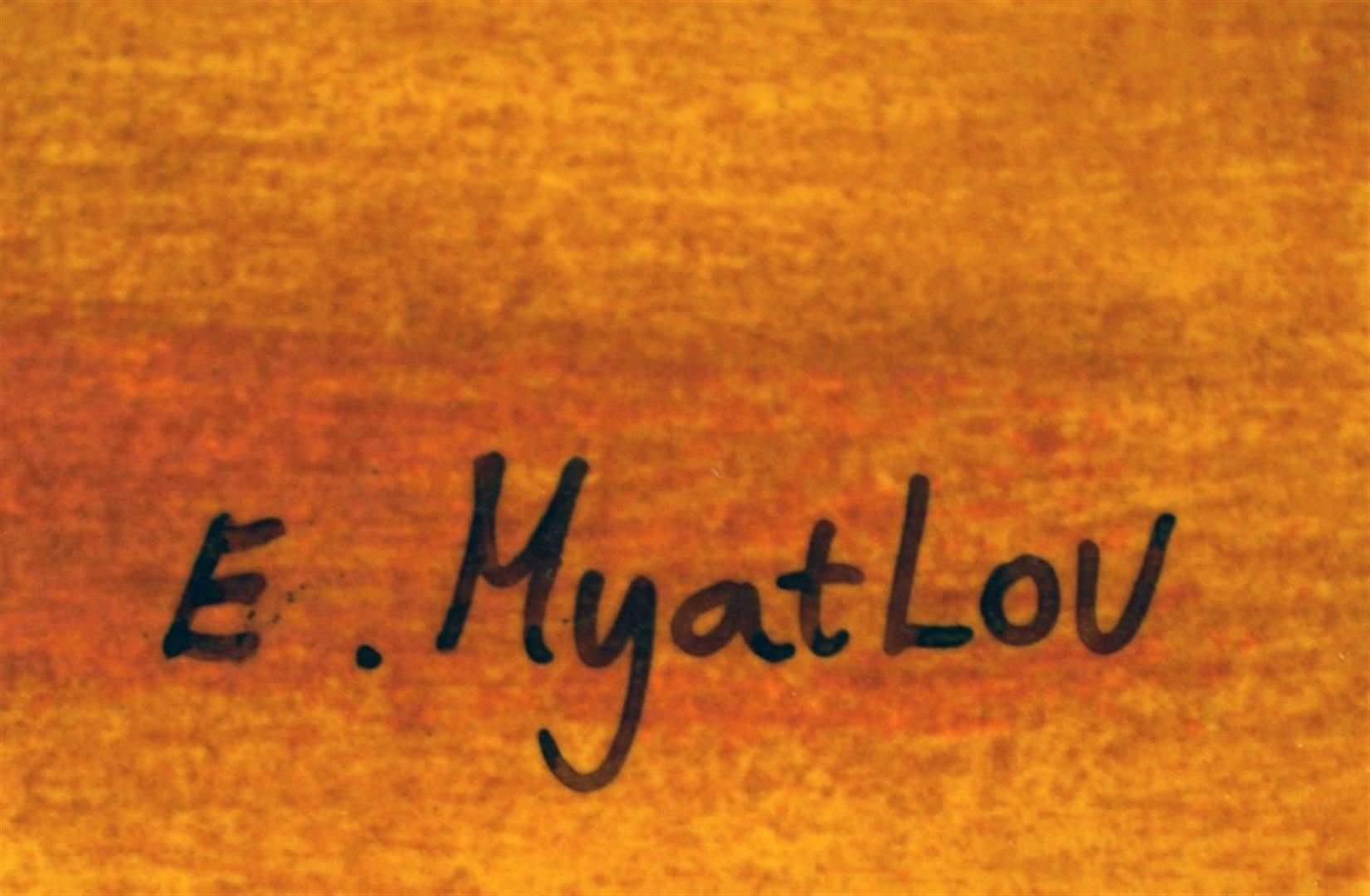 Artist: Esther Myatlov - Title: Magical Tune - Medium: Serigraph on Fine Art Paper - Signature: Hand-signed by the Artist - Limited Edition: PP 75 - Paper Size: Approximately 8.75 inches x 6.75 inches - Unframed - Details: This work comes with a Certificate of Authenticity - Esther Myatlov Achieves A Strong Illumination Of The Painting From Deep Within. She Then Uses Fiery Colors And Unambiguous Contours To Convey A Joyous Atmosphere, With An Ethnic-mythological Flavor.