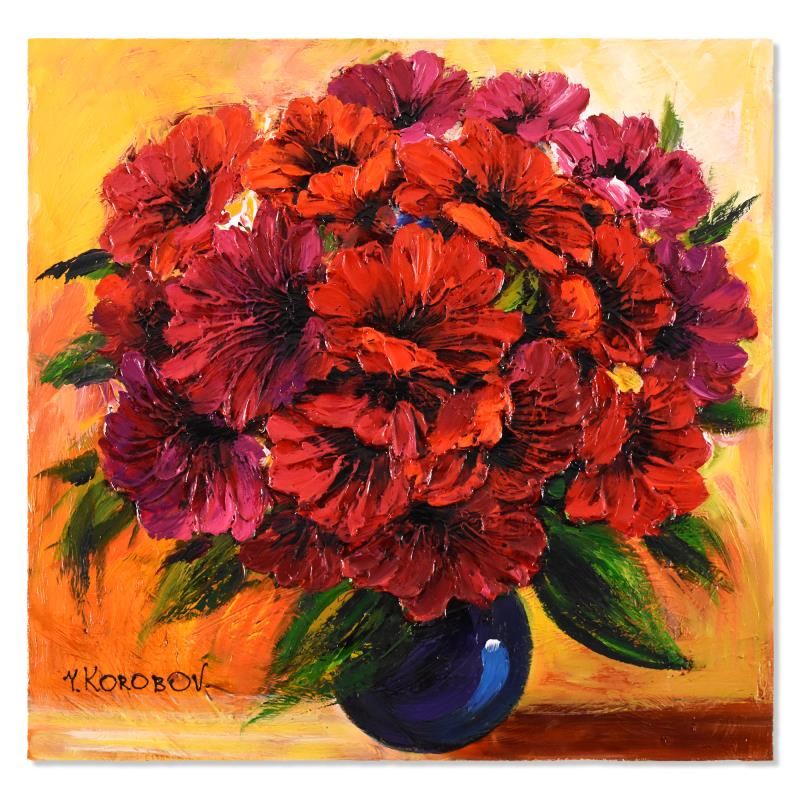 Eternal Love is an original acrylic painting on canvas by Yana Korobov, hand signed by the artist. Includes Letter of Authenticity. Measures approx. 24" x 24" (image).