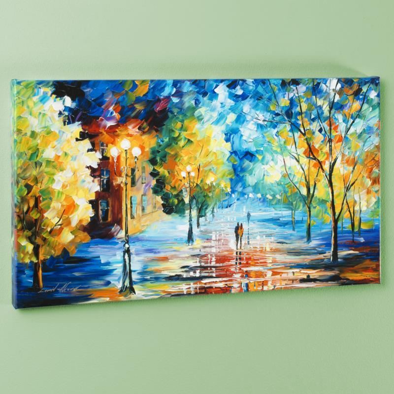 Leonid Afremov's (1955-2019) masterful use of color and texture make his paintings unique collectibles that are sure to brighten any wall. "Expansive Canopy" is a limited edition giclee on canvas. The piece is numbered and bears the artist's authorized signature. This piece comes gallery wrapped. Includes Letter of Authenticity. Measures approx. 27.5" x 16" (image).