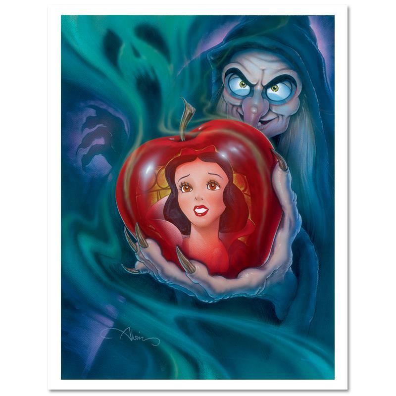 "Fairest in the Land" is a limited edition giclee on canvas, numbered and hand signed by John Alvin (1948-2008). This piece is licensed by Disney Fine Art. This piece has a 2" border and may be framed or gallery wrapped based on preference. Includes Certificate of Authenticity! Measures approx. 15" x 20" (image).