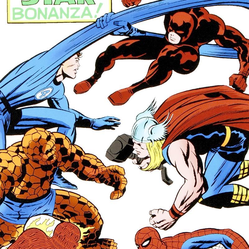 A piece of comic book history, this limited edition print, drawn by Jack Kirby (1917-1994), depicts a classic Fantastic Four cover from 1968. Jack Kirby, along with the legendary Stan Lee, is credited with creating some of Marvel Comics' most popular characters, like The Fantastic Four, The Hulk, and the X-Men. In 1987, Kirby was one of the three inaugural inductees of the Will Eisner Comic Book Hall of Fame. "Fantastic Four #73" is a numbered limited edition giclee on canvas by Jack Kirby (1917-1994) presented by Marvel Comics and hand signed by the great Stan Lee. Includes Certificate of Authenticity! Measures approx. 15" x 22" (image).