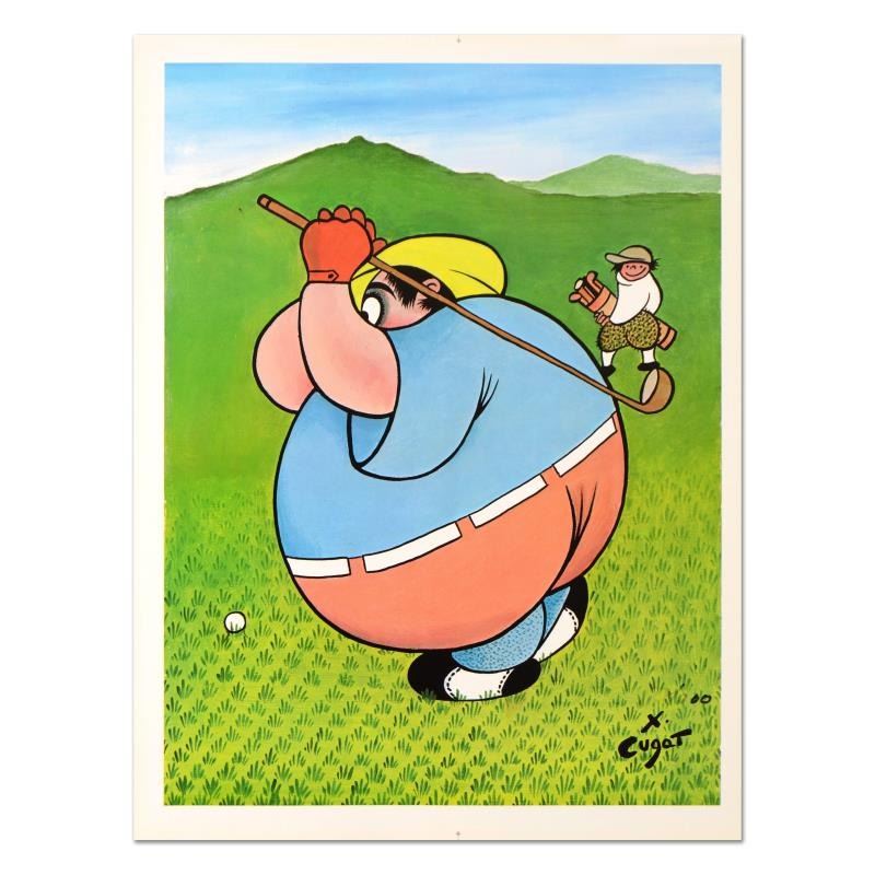"Fat Golfer" is a limited edition lithograph on paper by Xavier Cugat (1900-1990), numbered and bearing the plate signature of the artist. Includes Letter of Authenticity. Measures approx. 22" x 28" (border), 18" x 24" (image).