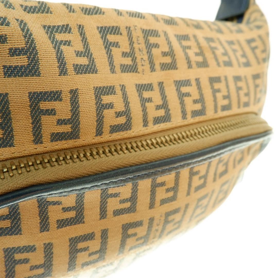 Fendi Brown Zucchino Canvas Leather Metal Round Logo Front Pocket Small Shoulder