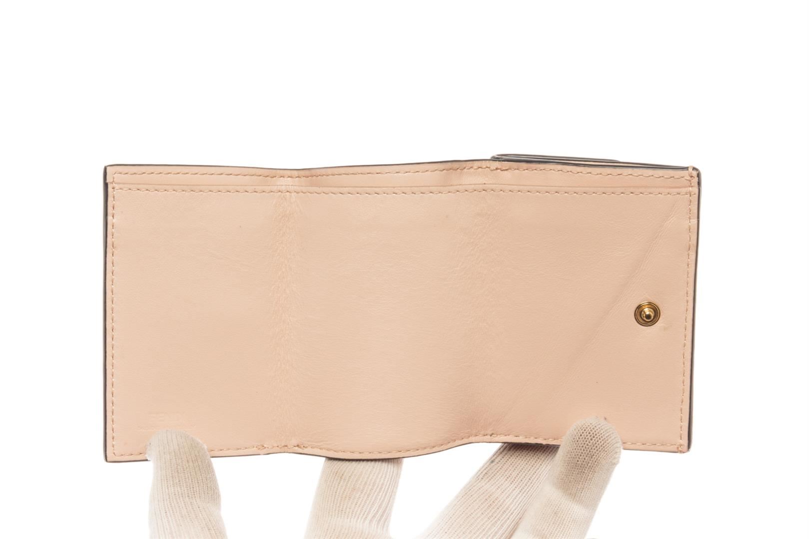 Fendi Pink Leather Micro Trifold Wallet. All available information is listed in the description and shown in the photos. fendi pink leather micro trifold wallet with foldover top and gold-tone hardware, snap it up.