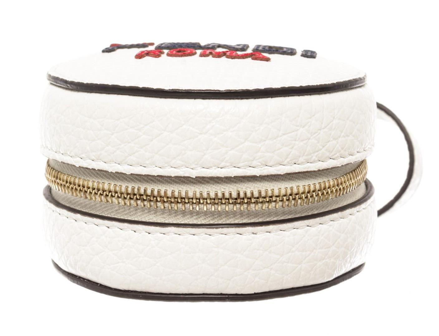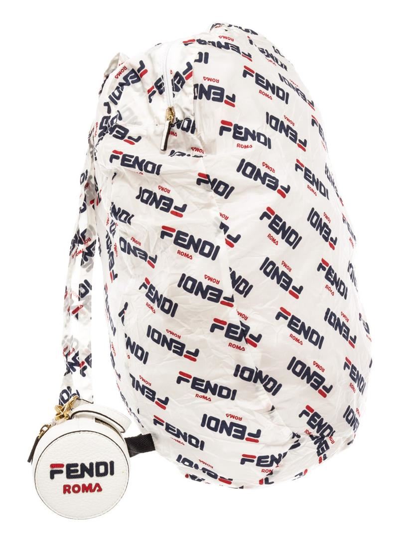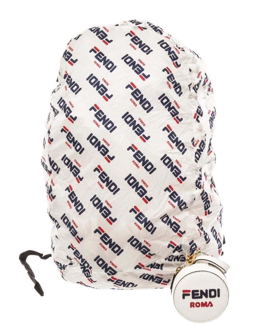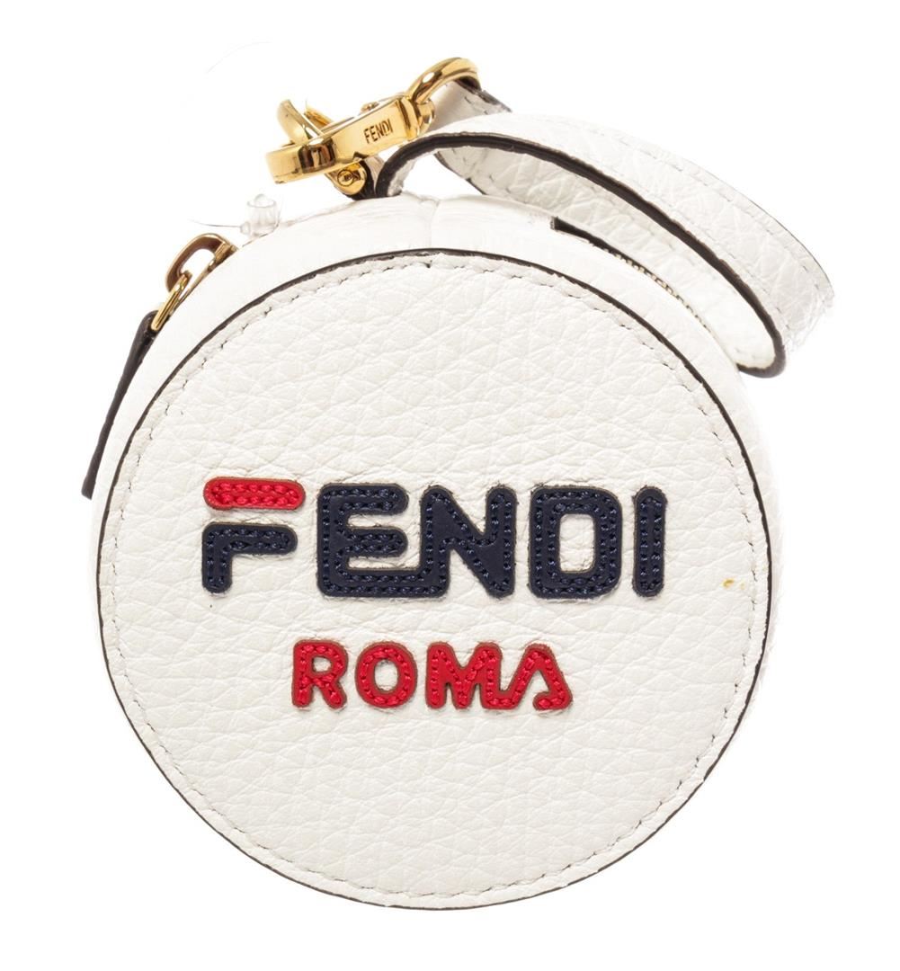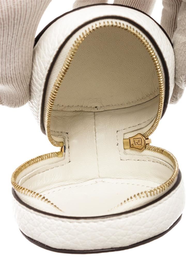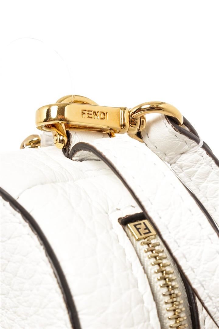 White leather coin purse Fendi features foldable nylon backpack, with a gold-tone hardware, zip closure and lobster clasp to attach purse to another bag or belt loop.
