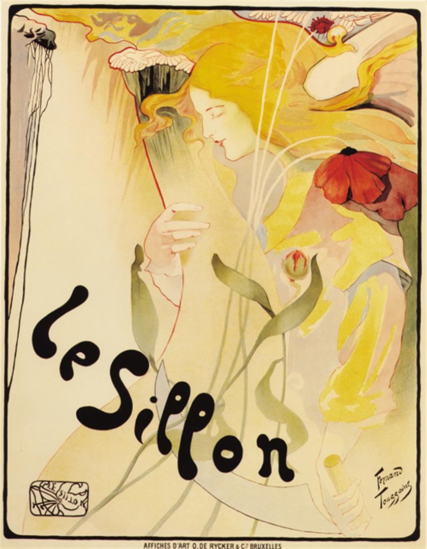 Artist: Fernand Toussaint Title: Le Sillon Medium: Fine Art Giclee on Canvas Image Size: Approximately 25.75 inches x 20 inches Unframed on Unstretched Canvas Details: This is a beautiful Reproduction Giclee on Archival Canvas This Reproduction of the poster by Fernand Toussaint advertises an exhibition by the artists' group Le Sillon, which was active in Brussels in the 1890s. It shows a romantic image of a woman cutting flowers, surrounded by foliage. Toussaint was primarily a painter, but when he created this image he achieved instant recognition in the field of poster design. The colours are soft and glowing, and the lines have the flowing quality typical of Art Nouveau imagery. Le Sillon is French for furrow, and the image symbolises the aims and expression of a young artist making his mark.