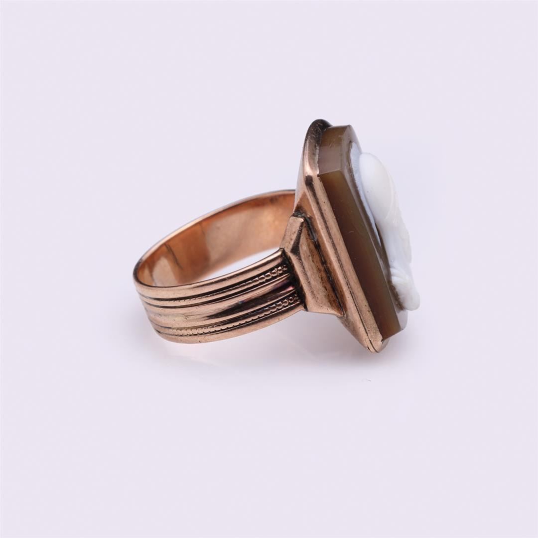 Rose Gold Fine Vintage Hardstone Cameo Ring. Total weight is 9.5 gm. Estimated retail value $1,400.