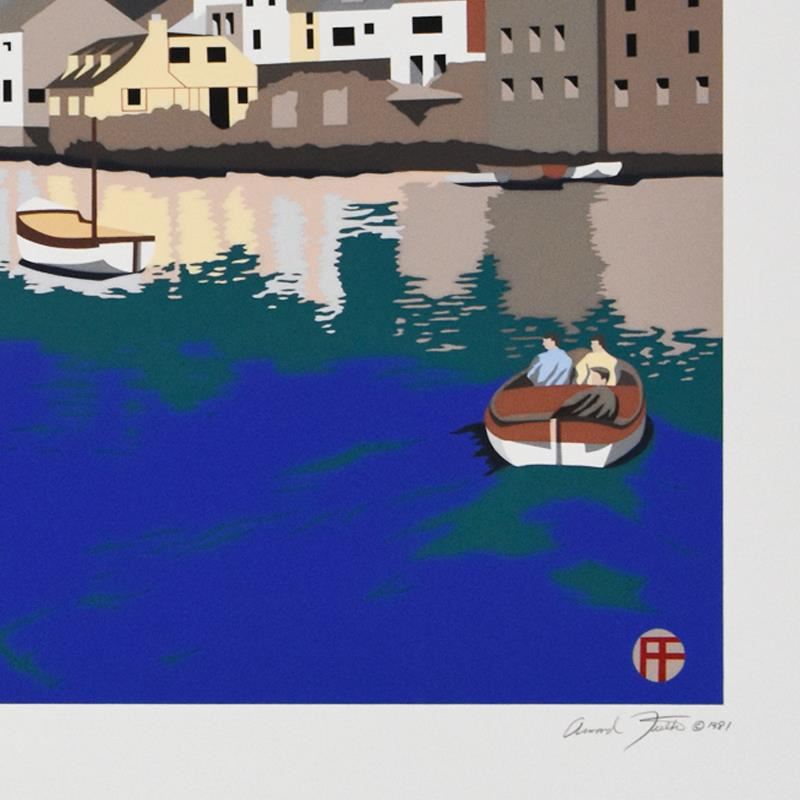 "Fisherman's Cove" is a limited edition hand pulled original serigraph on paper by Armond Fields (1930-2008), numbered and hand signed by the artist. Includes Letter of Authenticity. Measures approx. 32" x 22" (border), 26" x 16" (image).