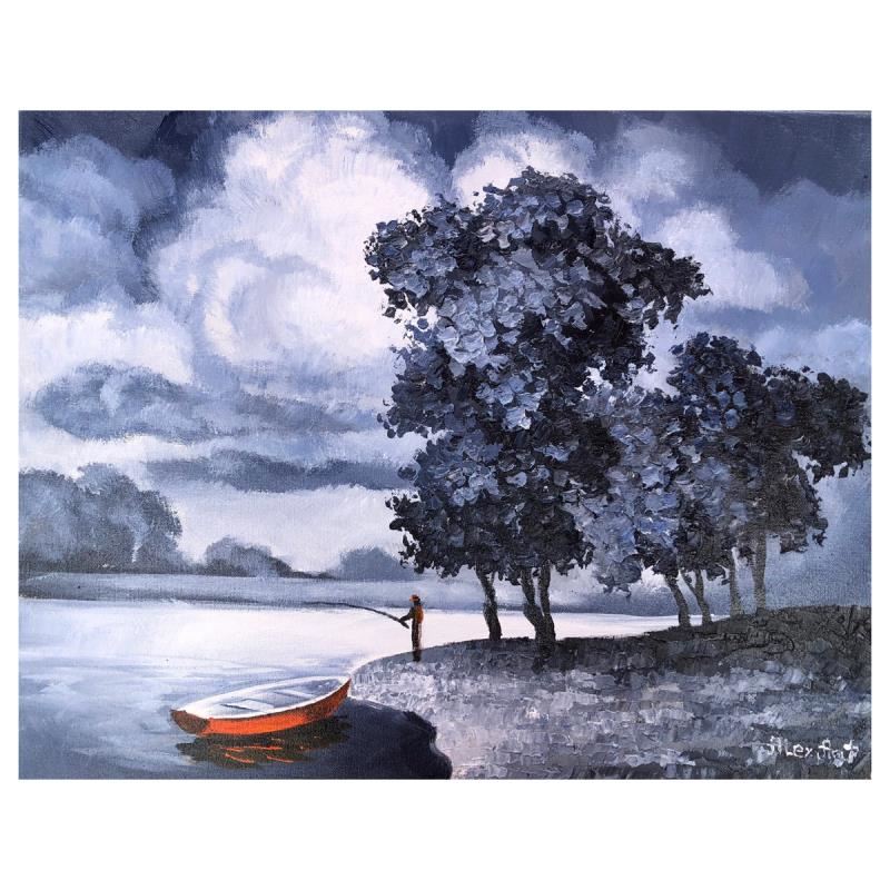"Fishing At Dawn" is an original oil painting on stretched canvas by Alexander Antanenka. Hand signed by the artist, the piece comes with a letter of authenticity. Measures approximately 16" x 20" (image). There may be scuffs on the edges and corners which would be concealed when framed.
