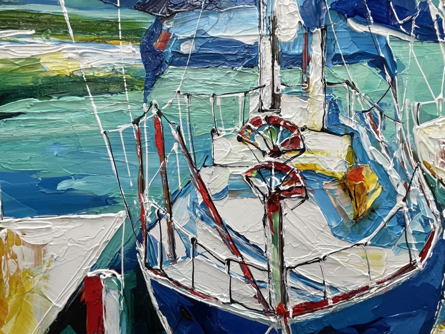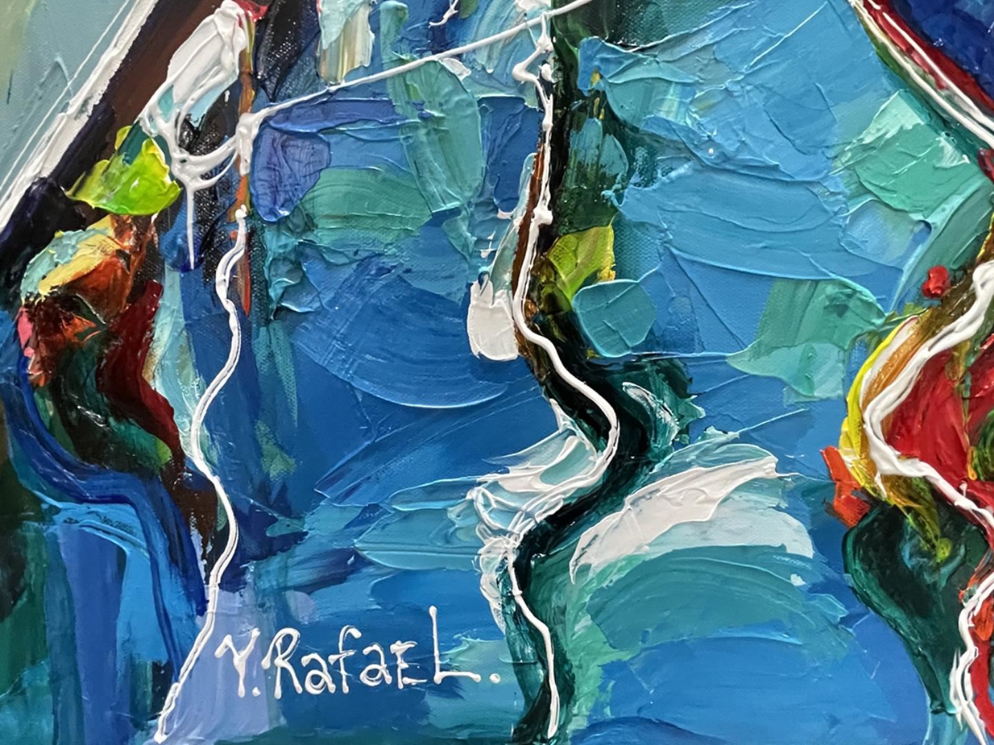 Brilliant original acrylic on 36x38" canvas.signed by artist. Artwork comes with a certificate of authenticity. This artwork comes framed.