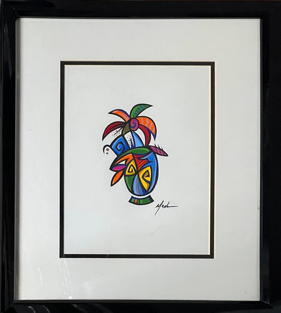 Flower II by Guido, Mena. Original One-of-a-Kind Hand Signed Ink Drawing Framed. Frame Good. Dimensions: 11.5 x 8.5. Excellent Condition.