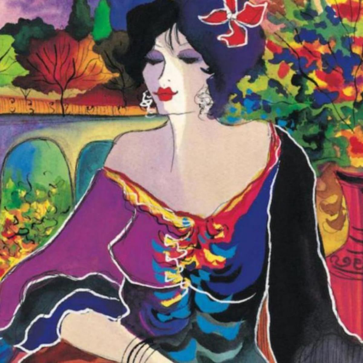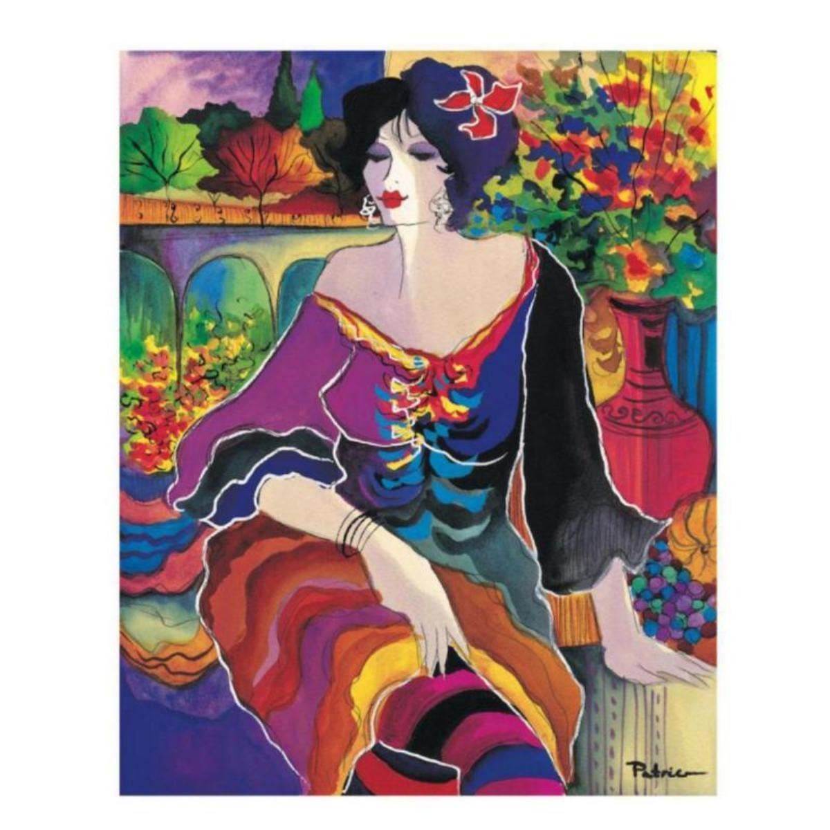 "Flower Shop" is a limited edition Giclee on Canvas by Patricia Govezensky. The piece is numbered, hand siged by the artist, and come with a letter of authenticity. Measures approximately 10" x 8".