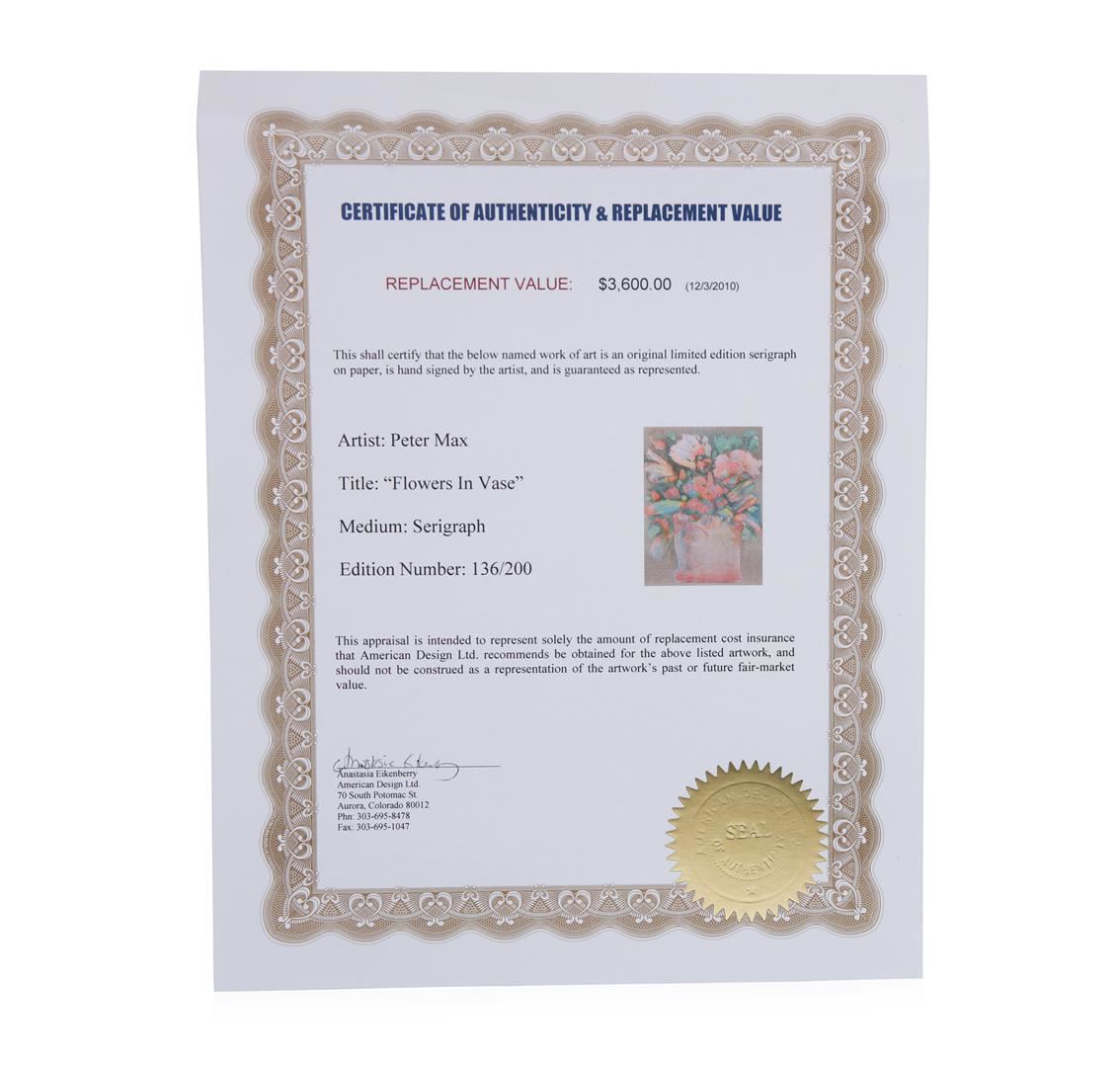 This limited edition #136 of 200 is signed by the artist Peter Max - Certificate of Authenticity from American Design Ltd.