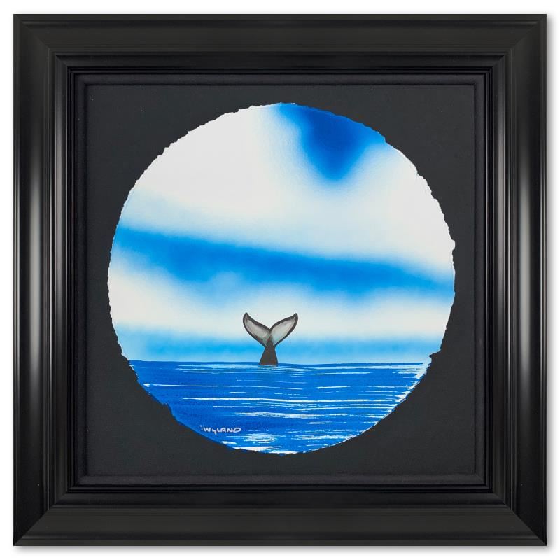 "Fluke" is an original painting, watercolor on deckle edge paper by Wyland. Hand signed by the artist, the piece comes custom framed and with a letter of authenticity. Measures approximately 30" x 30" (framed), 19.5" x 19.5" (image).